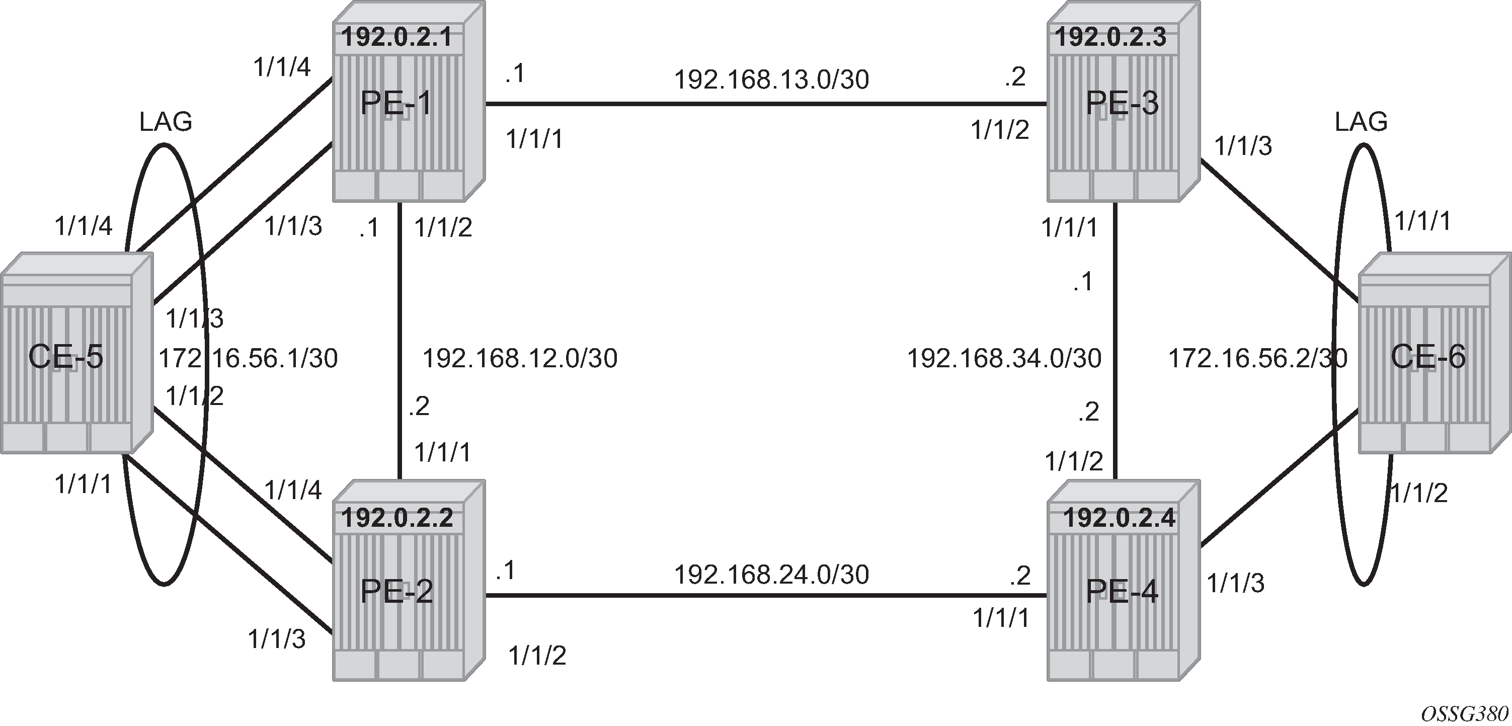 The LAG configuration on the CEs is only included for completeness; any CE device could be used.