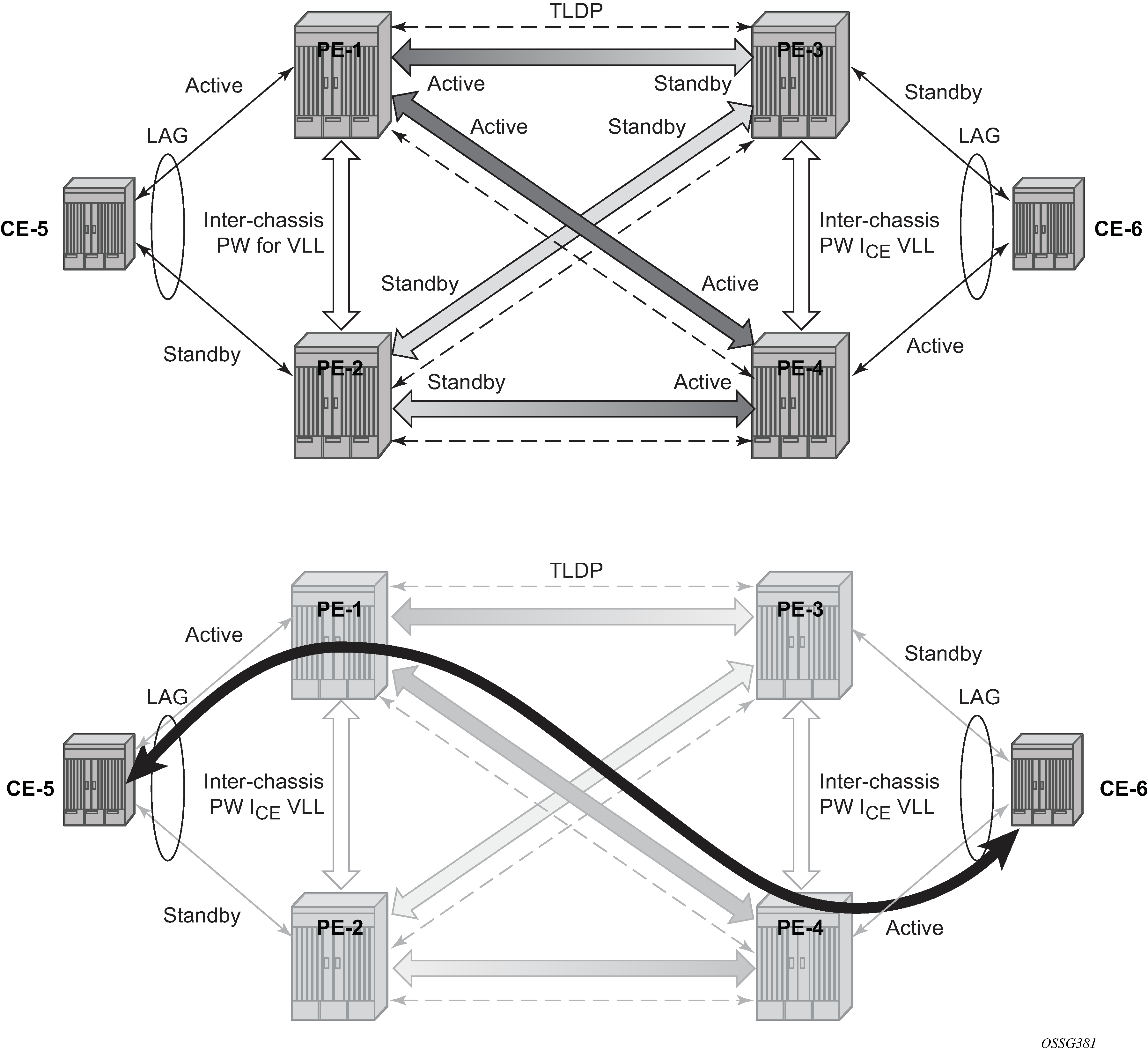 However, there are a few applications in which SDP redundancy does not protect the end-to-end pseudowire path, for example when there are two different destination SR-series PE nodes for the same VLL service.
