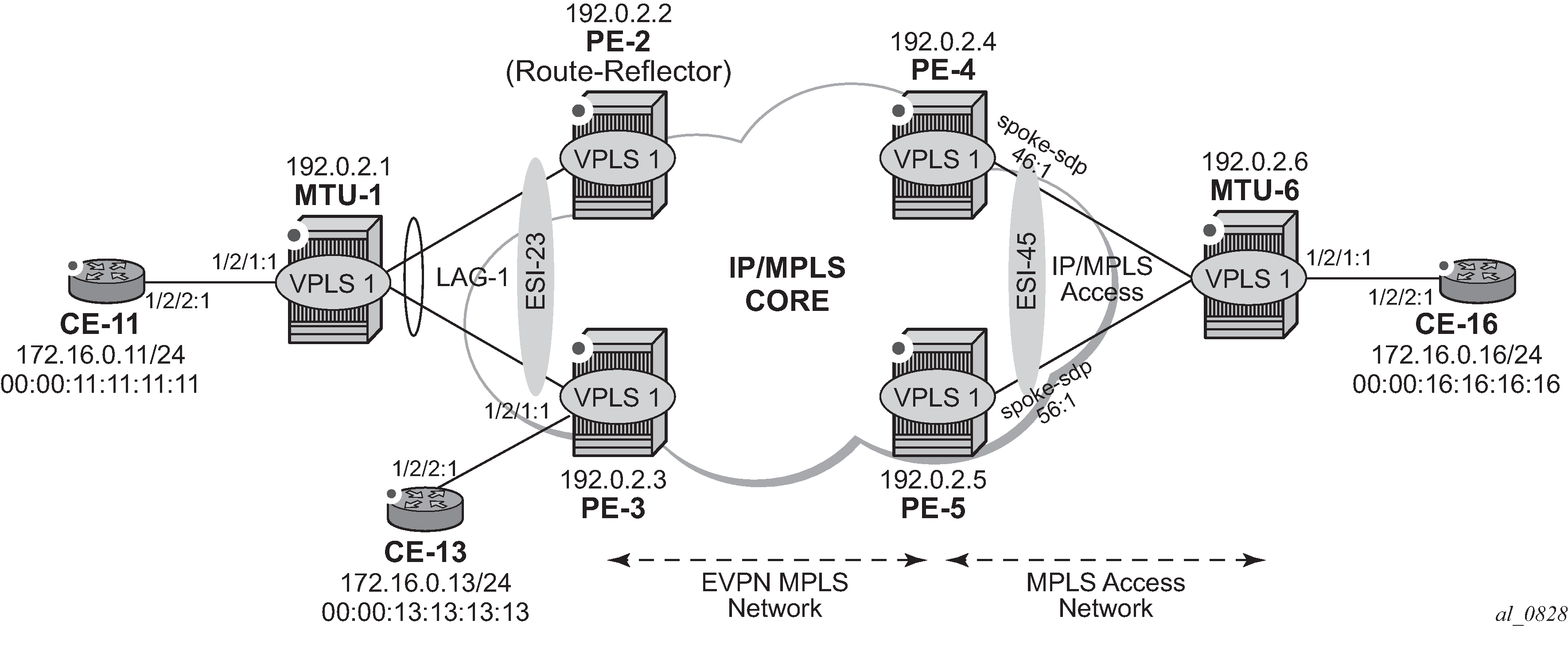 SR OS has a full RFC 7432 EVPN-MPLS implementation including single-active and all-active multi-homing. This example has shown how to configure and operate EVPN-MPLS for a simple non multi-homing configuration as well as a multi-homing configuration. Other topics, such as the integration of VPLS objects with EVPN-MPLS and proxy-ARP/ND, have also been discussed.