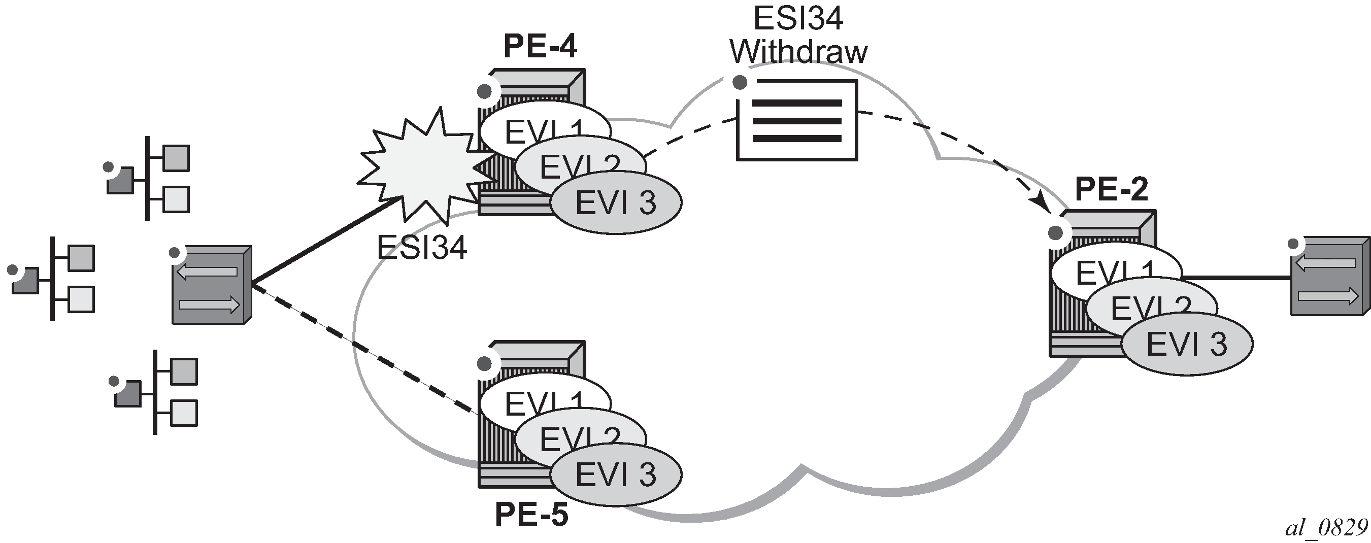 When EVPN multi-homing is used in an EVI, routes type 1 and 4 are used (where type 1 has two different purposes):
