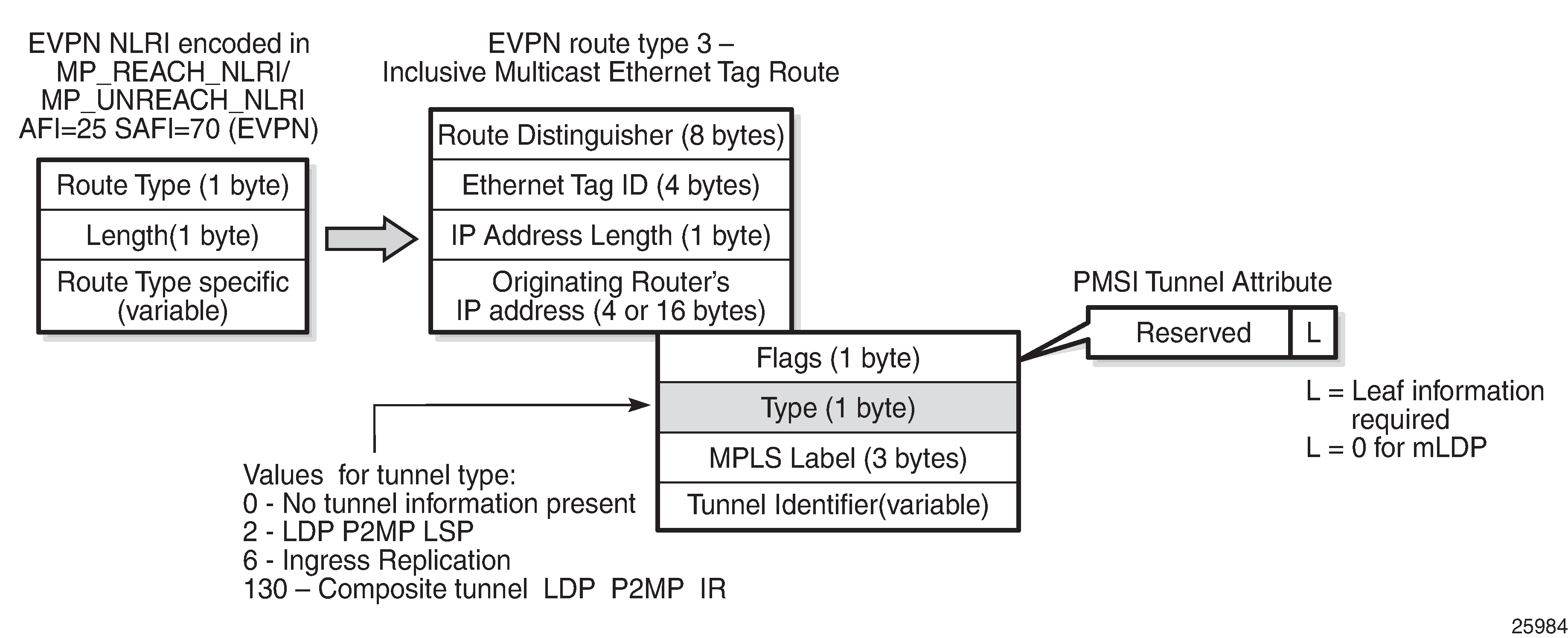 The PTA can have different formats depending on the tunnel type enabled in the service. The SR OS EVPN-MPLS implementation supports the following tunnel types (SR OS supports different tunnel types for EVPN-VXLAN):