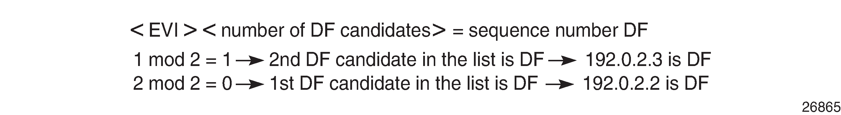 Taking the Ethernet VPN Identifier (EVI) or ISID and the number of PEs in the ES as input, the RFC 7432 service-carving algorithm elects the DF from the list of candidate PEs that advertise the ES identifier (ESI). While this algorithm provides an automated and fair DF distribution across services in the ES, it does not allow the operator to control what PE is the DF for which service. In addition, in case of a DF failure, when the former DF comes back up, a new DF switchover will cause unnecessary packet loss (this mode of operation is called revertive). SR OS implements draft-ietf-bess-evpn-pref-df to give more control to the operator on the DF election and avoid the revertive mode.