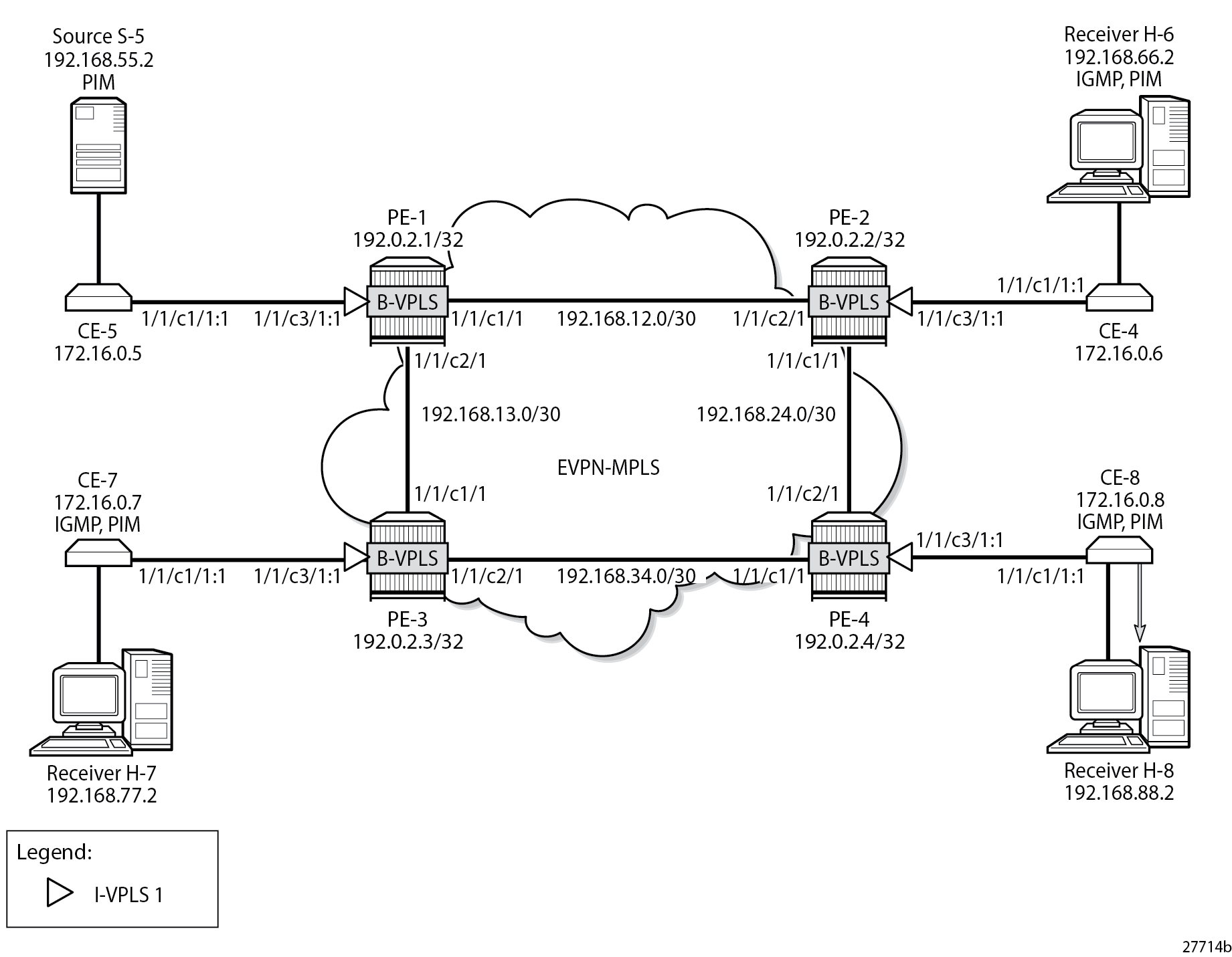 The set of all EVPN endpoints in the B-VPLS is treated as a single PIM interface.