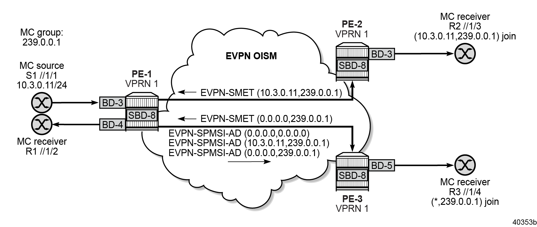 SR OS supports S-PMSI A-D routes in EVPN OISM networks and in VPLS networks with EVPN proxy.