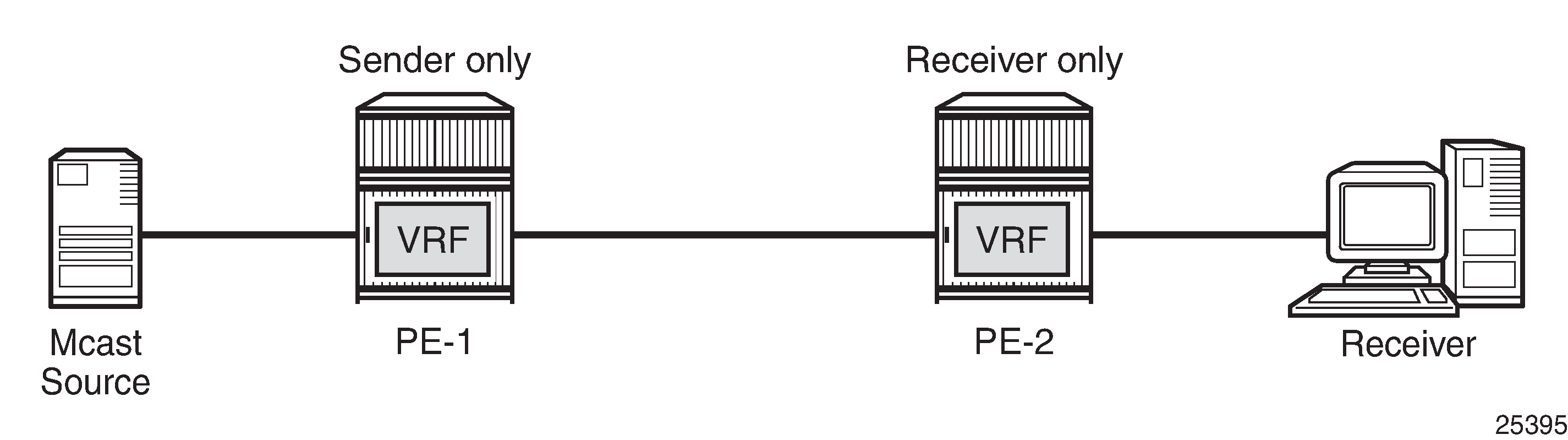 sender-receiver — MVPN has both sender and receivers connected to PE node.