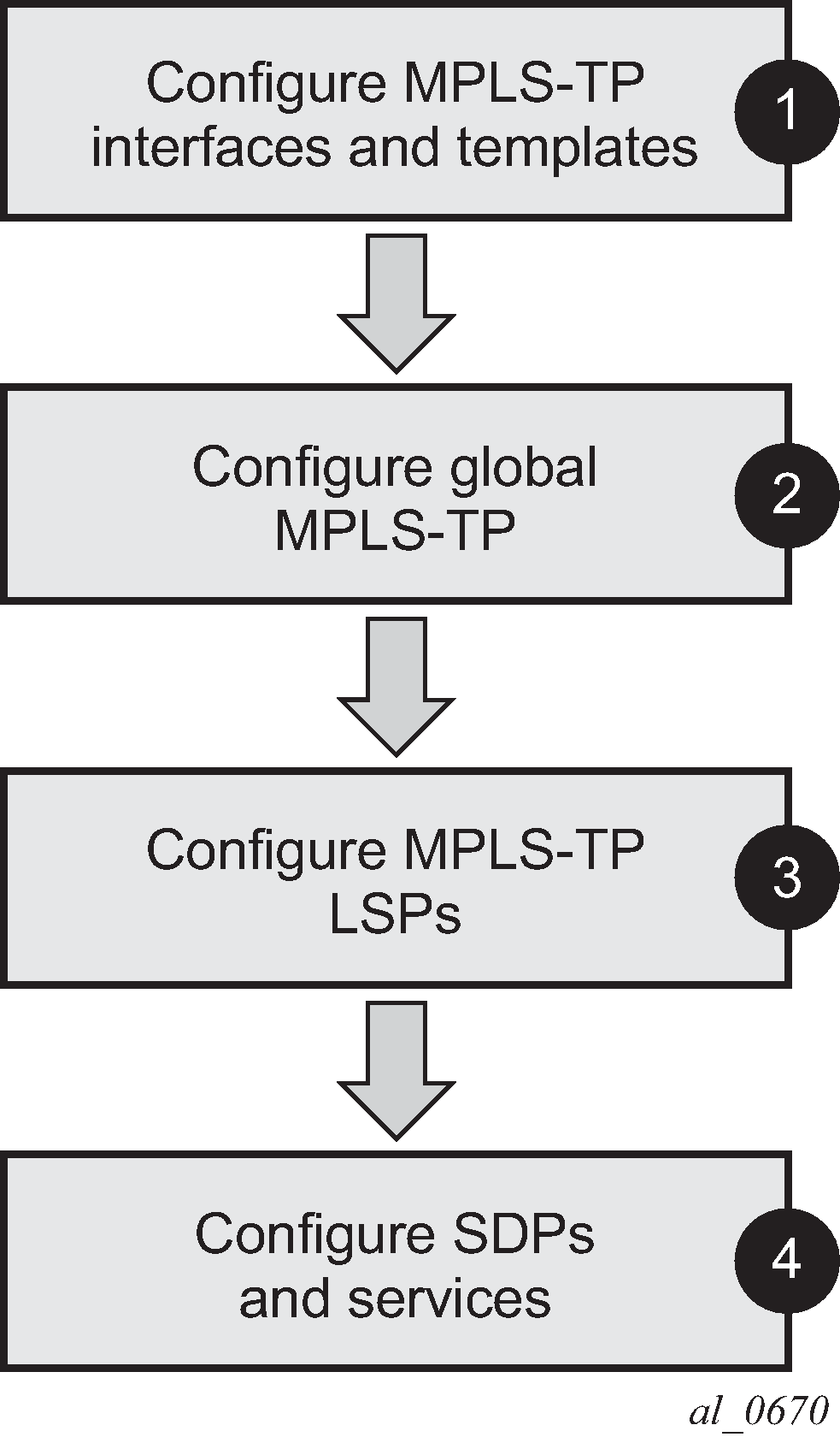 MPLS-TP configuration steps shows the configuration process to be followed when setting up MPLS-TP.