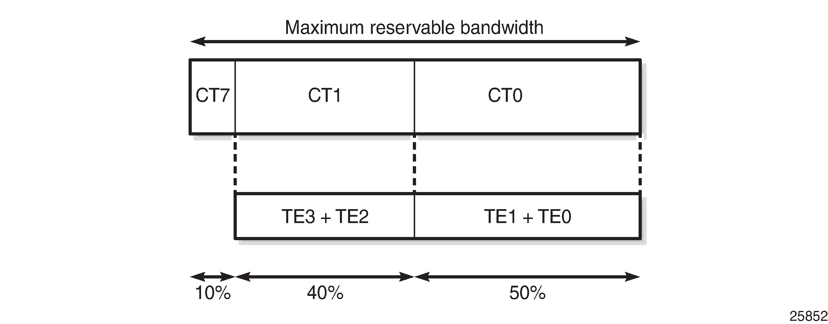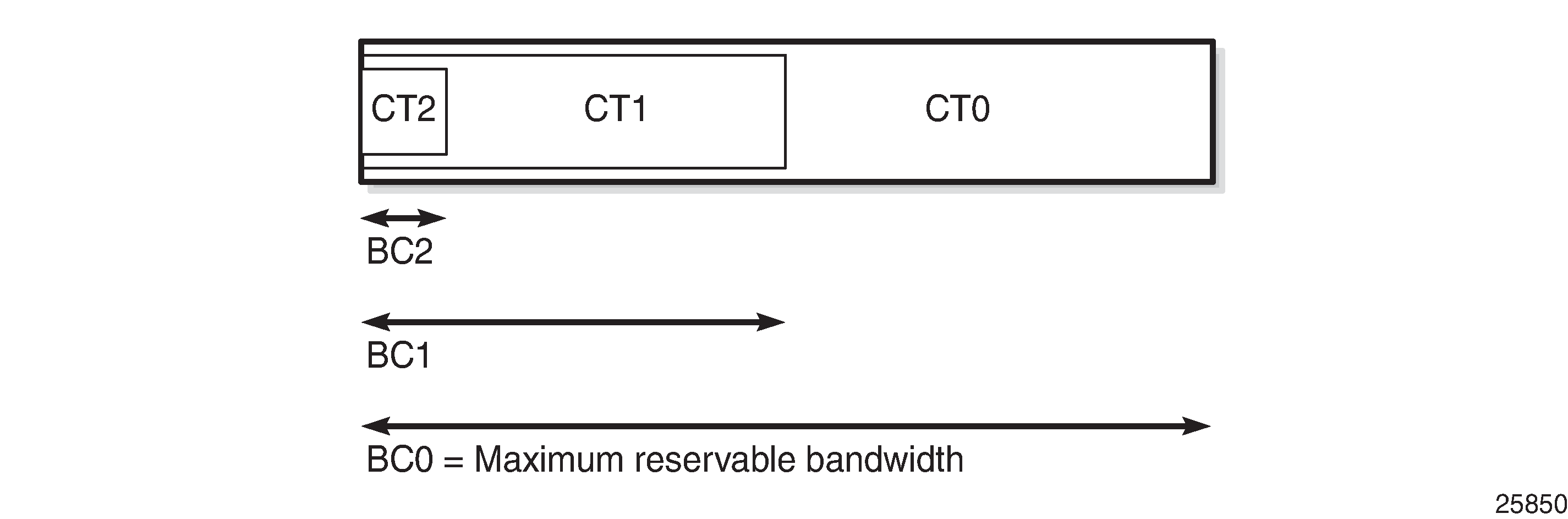 A CT is macro-flow crossing a link governed by a specific Bandwidth Constraint (BC). The BC is defined on a per-link and per-CT basis. A CT can be considered as a network-wide FC, advertised by the IGP (OSPF opaque link state advertisement (LSA), IS-IS TE Type Length Value (TLV)).