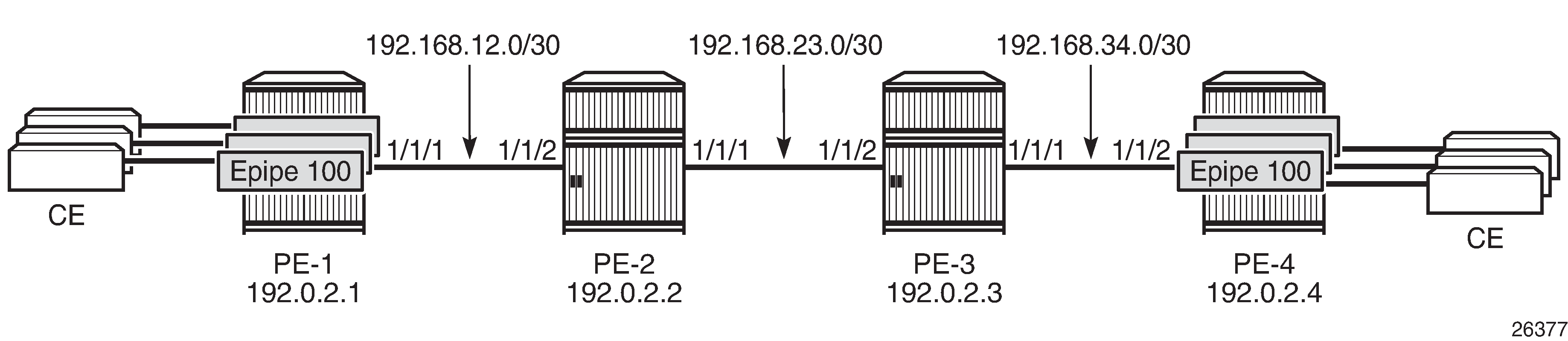 Not configurable. Derived from the service MTU and negotiated by T-LDP. The VC MTU value must match the other side. VC MTU = service MTU - 14 bytes (Ethernet header). |