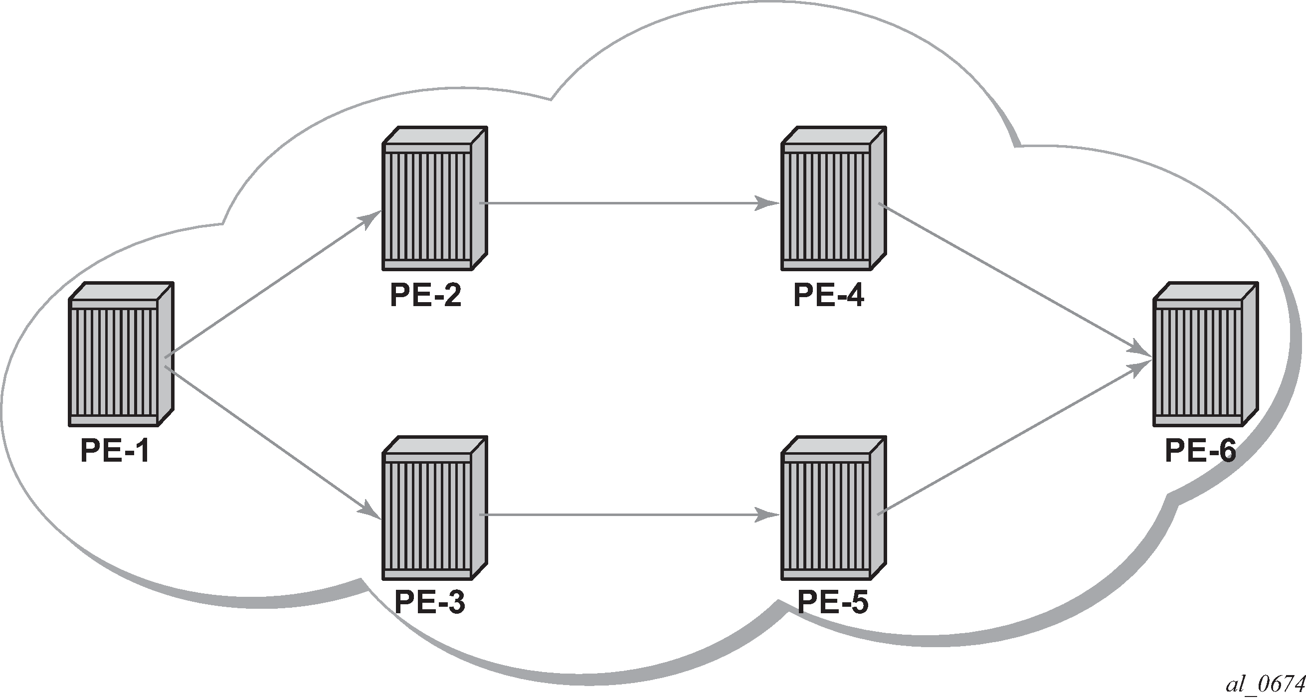 PE-2 has three possibilities to reach PE-1 (192.0.2.1): an SDP tunnel ID 1 with preference 5, an RSVP tunnel ID 2 with preference 7, and an LDP LSP with preference 9. Because SDP tunnel ID 1 has the lowest preference, it is the chosen option. PE-2 has three possibilities to reach PE-4 (192.0.2.4): an RSVP tunnel ID 3 with preference 7 and metric 10, an RSVP tunnel ID 4 with preference 7 and metric 16777215, and an LDP LSP with preference 9; so RSVP tunnel ID 3 is selected. PE-2 only has one option to reach PE-5 and PE-6 (192.0.2.5 and 192.0.2.6) using an LDP LSP.