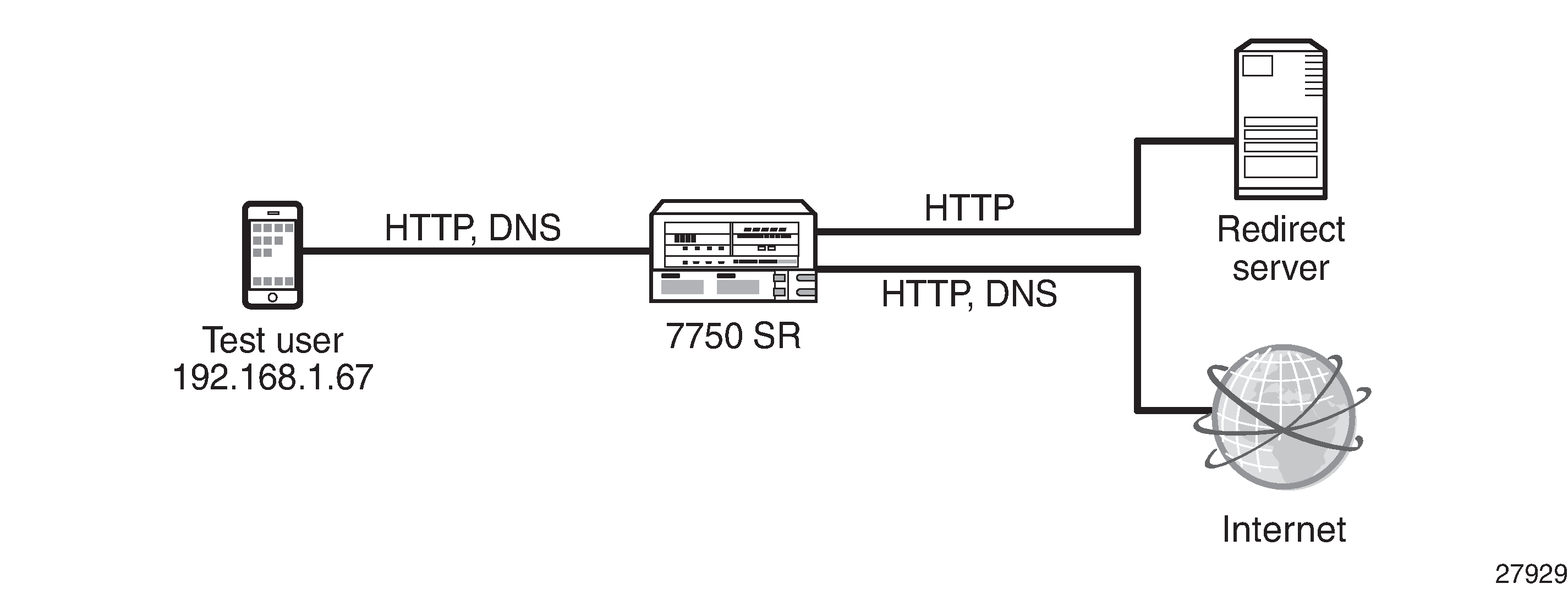 HTTP redirection based on URL filtering is not included in this chapter. For URL filtering, see chapter Application Assurance — Local URL List Filtering.