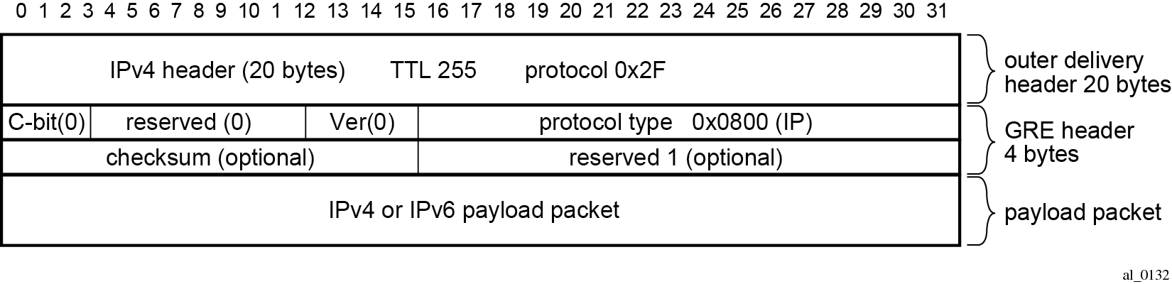The checksum (C) bit in the GRE header is set to 0 (no checksum present).