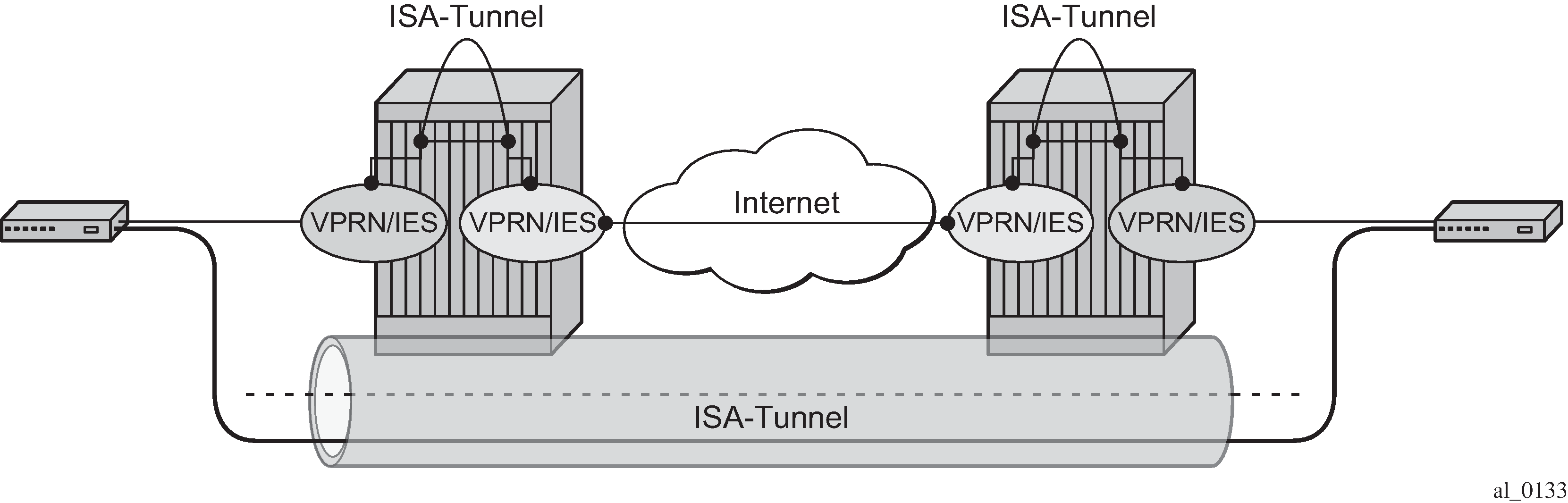 Encapsulation, de-encapsulation and other datapath operations related to IP/GRE are handled by the ISA-tunnel MDA.