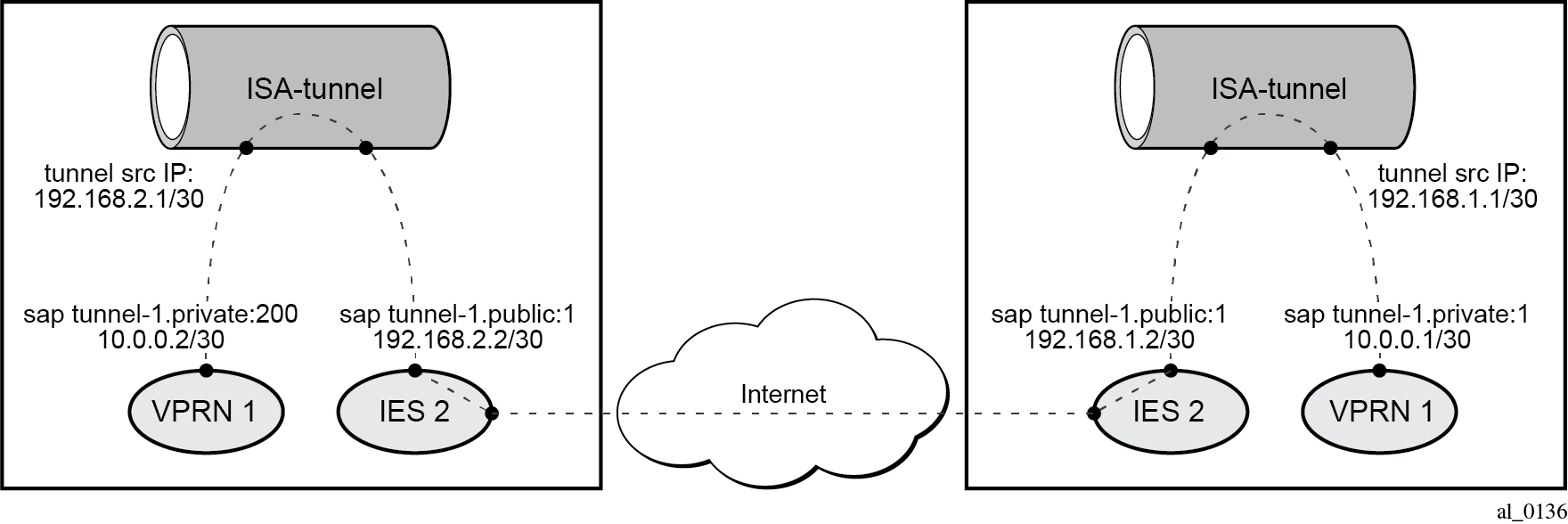 The ISA-tunnel MDA supports IP/GRE and IPSec tunnels and is configured as follows: