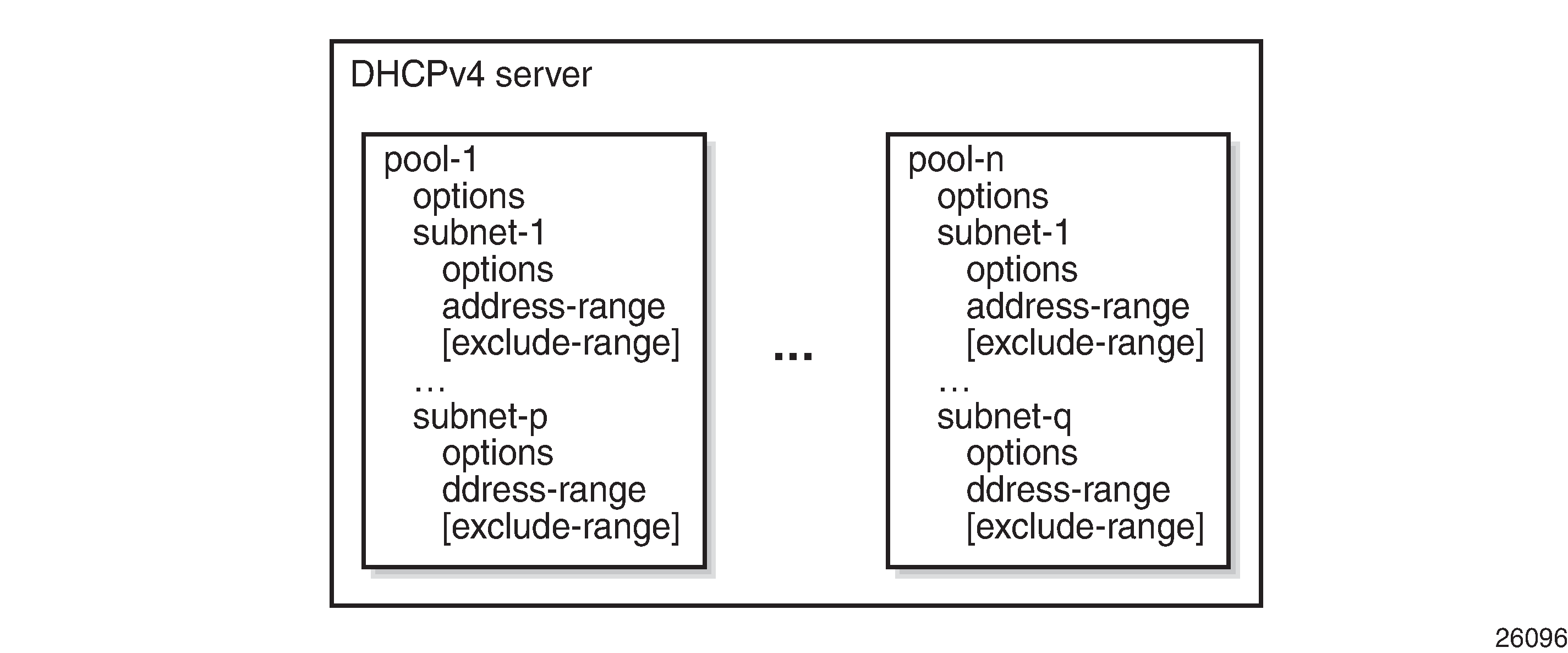 The DHCPv4 servers manage IPv4 addresses, subnets, and pools. These are hierarchically related to one another; see Addresses, Subnets, and Pools in a DHCPv4 Server.
