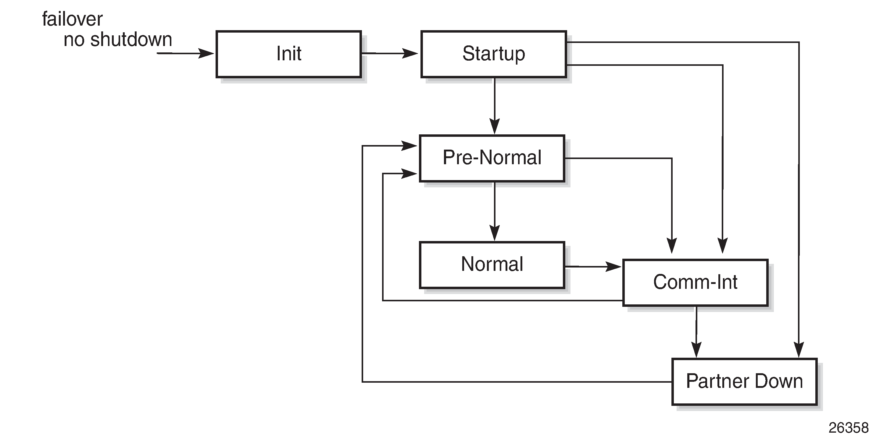 When the PRE-NORMAL state is reached at power on or reboot (so the previous failover state was STARTUP), the system immediately changes the failover state to NORMAL.