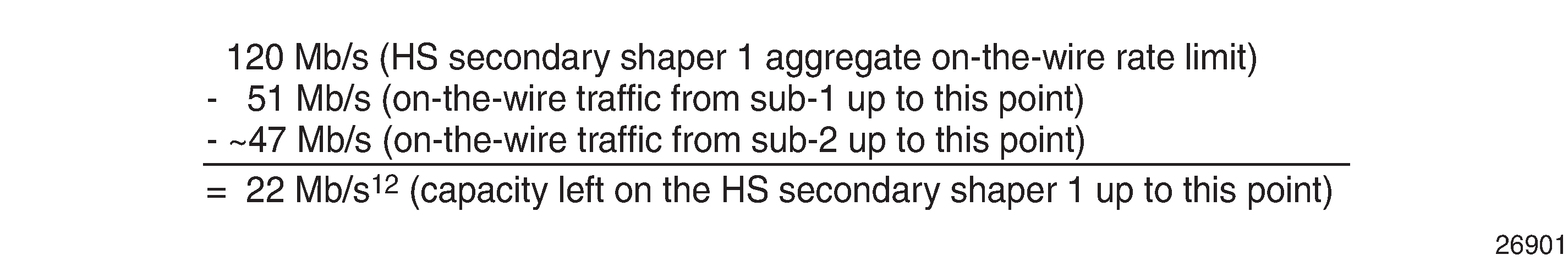 Spare capacity for HS secondary shaper 1 is calculated based on on-the-wire rates while the subscriber aggregate capacity is calculated in L2 rates, because the aggregate rate limit in the HS secondary shaper is configured in on-the-wire rates while the subscriber aggregate rates are configured in L2 rates.