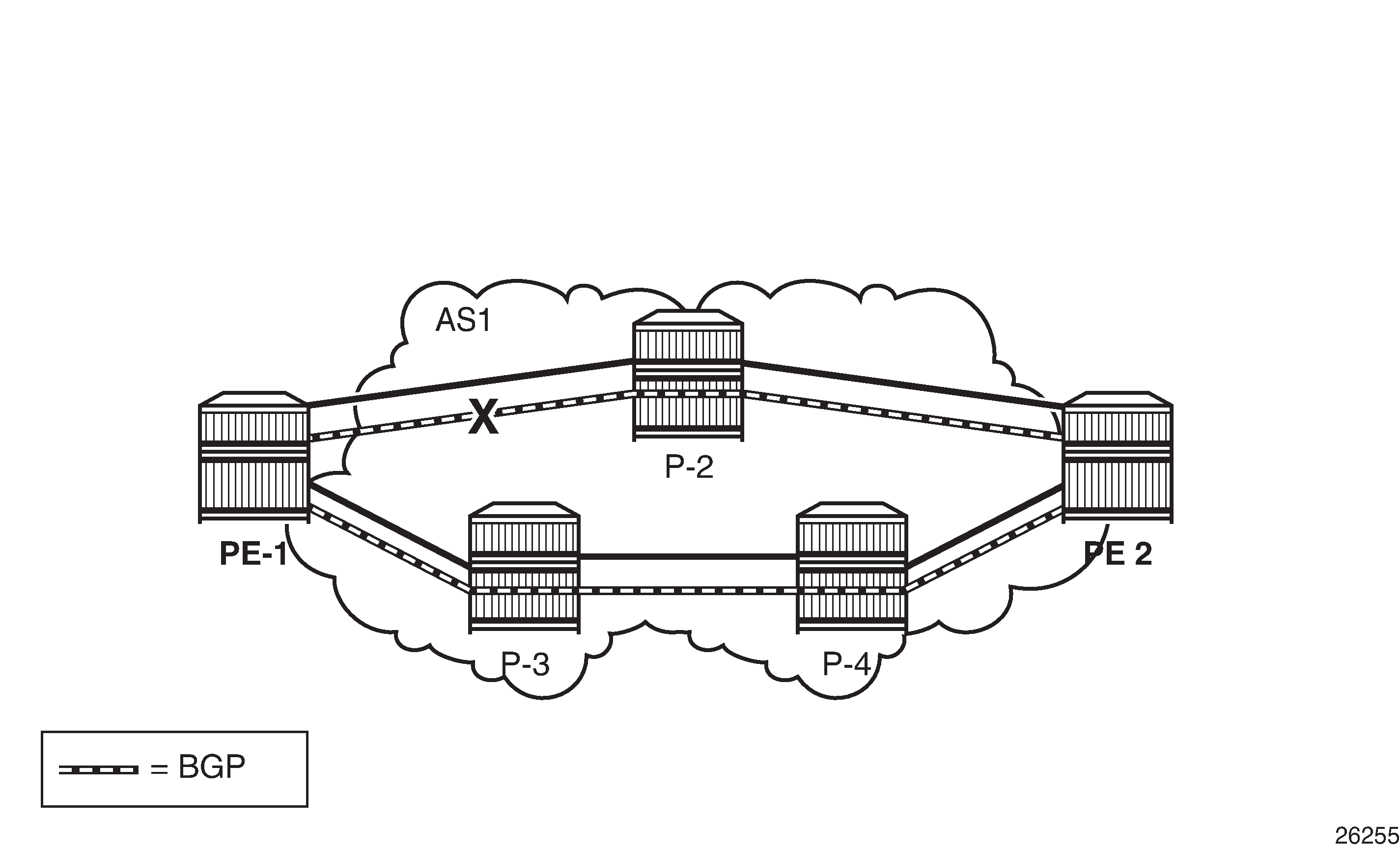 The BGP configuration for P-3 and P-4 is very similar and is not shown here.