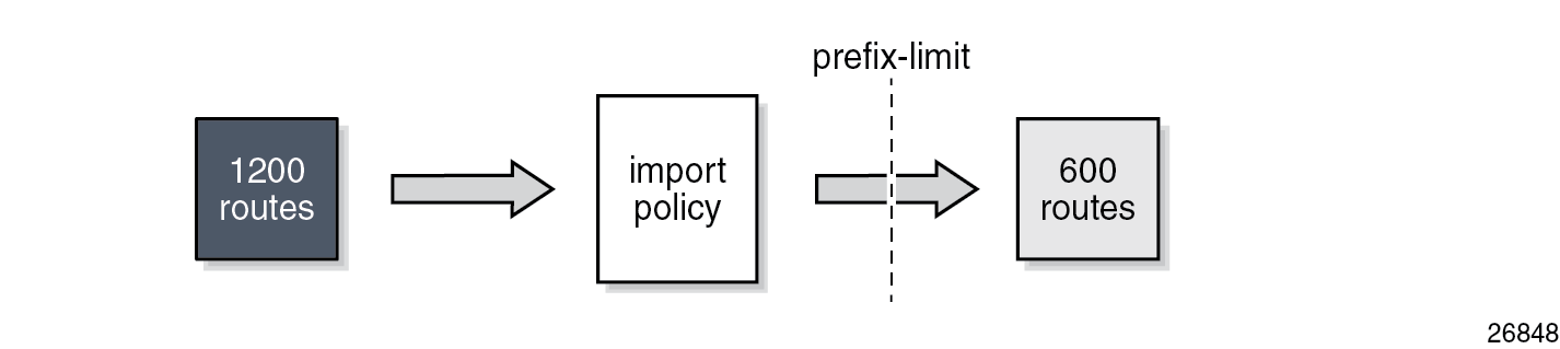 Use caution when using the prefix limit in combination with import policies. By default, the routes are counted when receiving them, that is, before the import policy is enforced. To postpone the prefix limit check, the post-import option must be used.