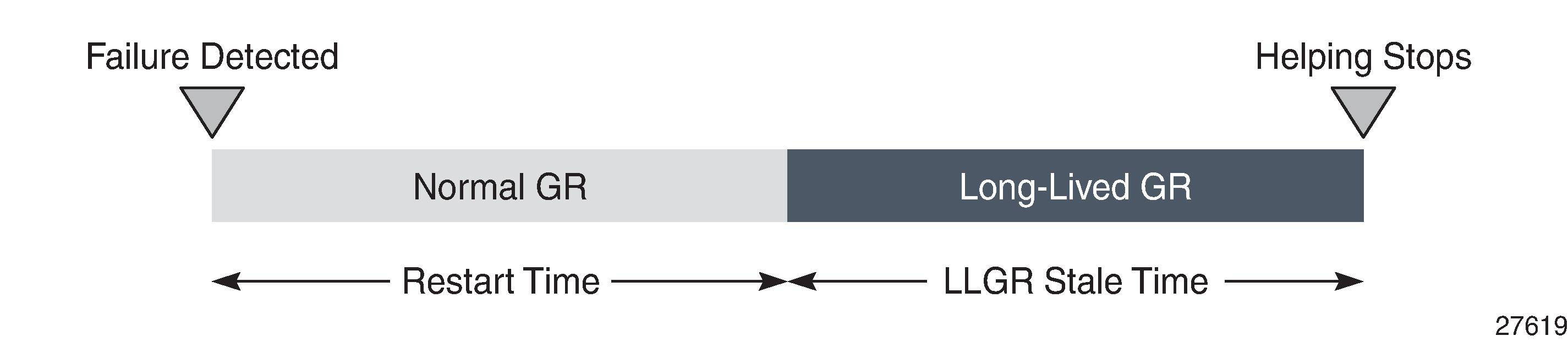 Graceful restart helpers avoid withdrawing BGP routes immediately when the BGP session goes down. Routes that were received from the failed router are marked as stale, but remain in use. When the BGP session is down for a longer time, such as hours or days, LLGR can take over when the GR ends, possibly only for a subset of AFI/SAFIs. In the LLGR phase, the LLGR-stale routes are depreferenced, but if they remain best and valid, they can be re-advertised to the BGP peers as LLGR-stale.