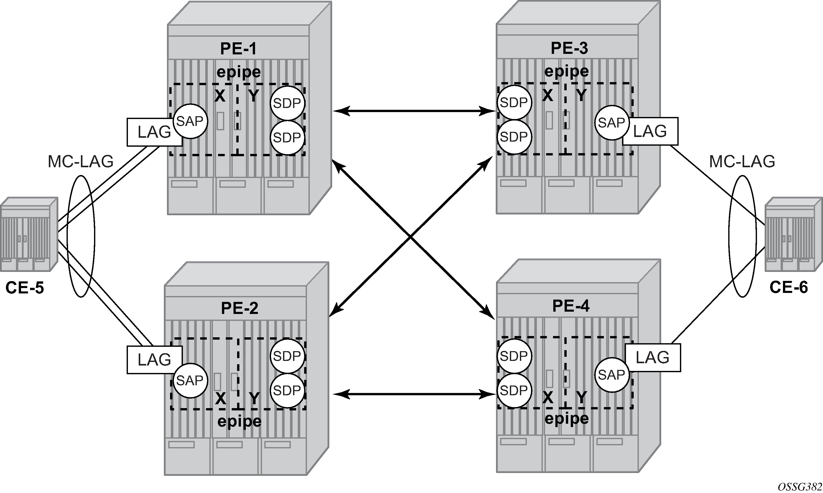 However, there are a few applications in which SDP redundancy does not protect the end-to-end pseudowire path, for example when there are two different destination SR-series PE nodes for the same VLL service.
