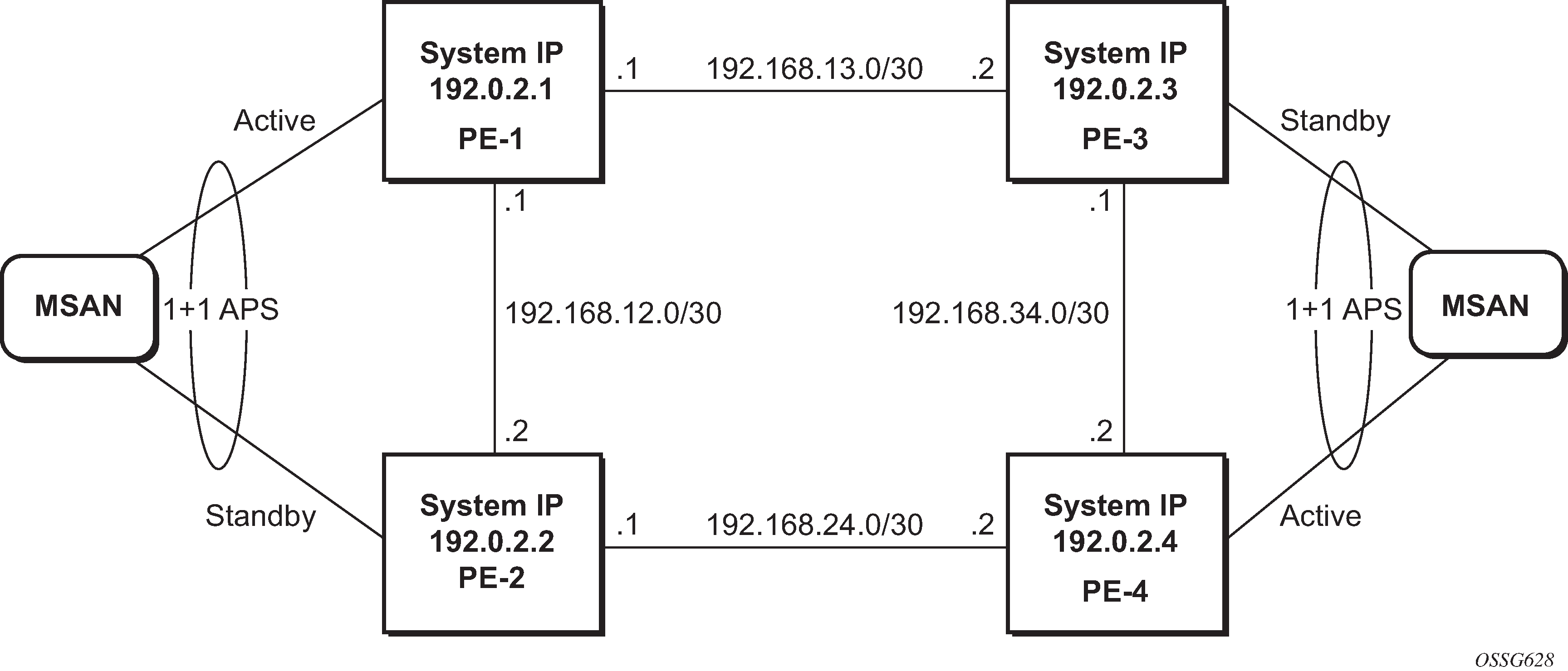 This chapter was initially written for SR OS Release 6.0.R2, but the CLI in the current edition is based on SR OS Release 19.10.R2.The configuration in this chapter includes the use of the ATM ports. See the Release Notes for information about support of ATM (and other) MDAs on various platforms as well as MC-APS restrictions.