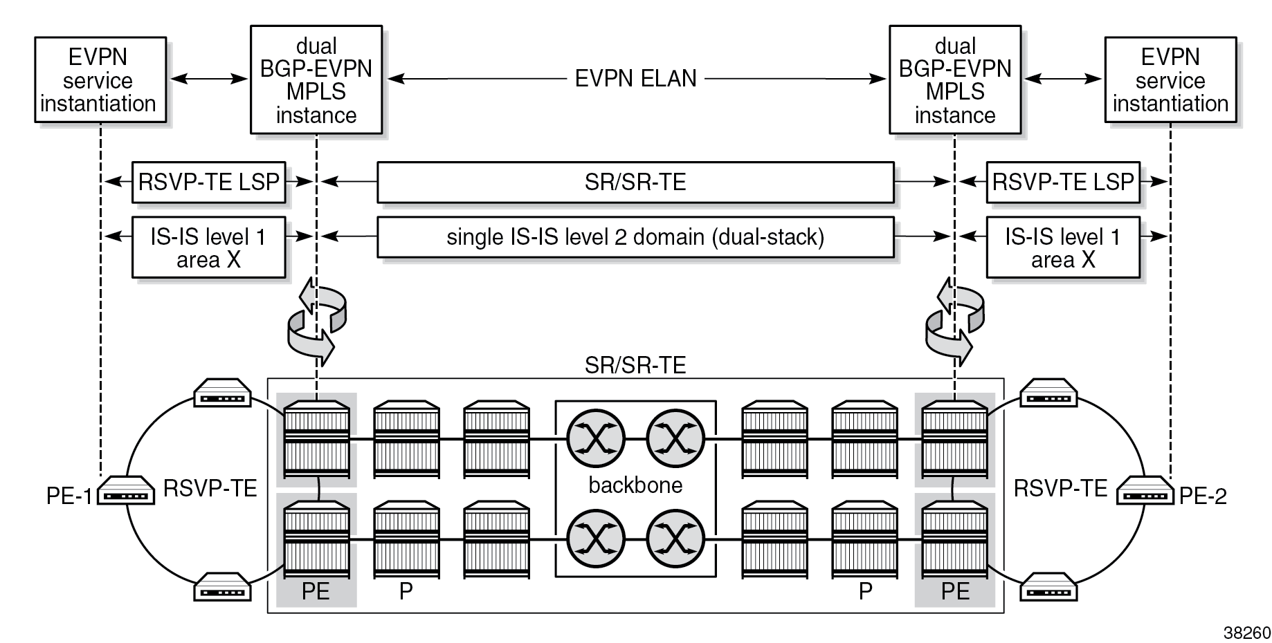 - dual EVPN-MPLS instance VPLS services on the NHS-RRs