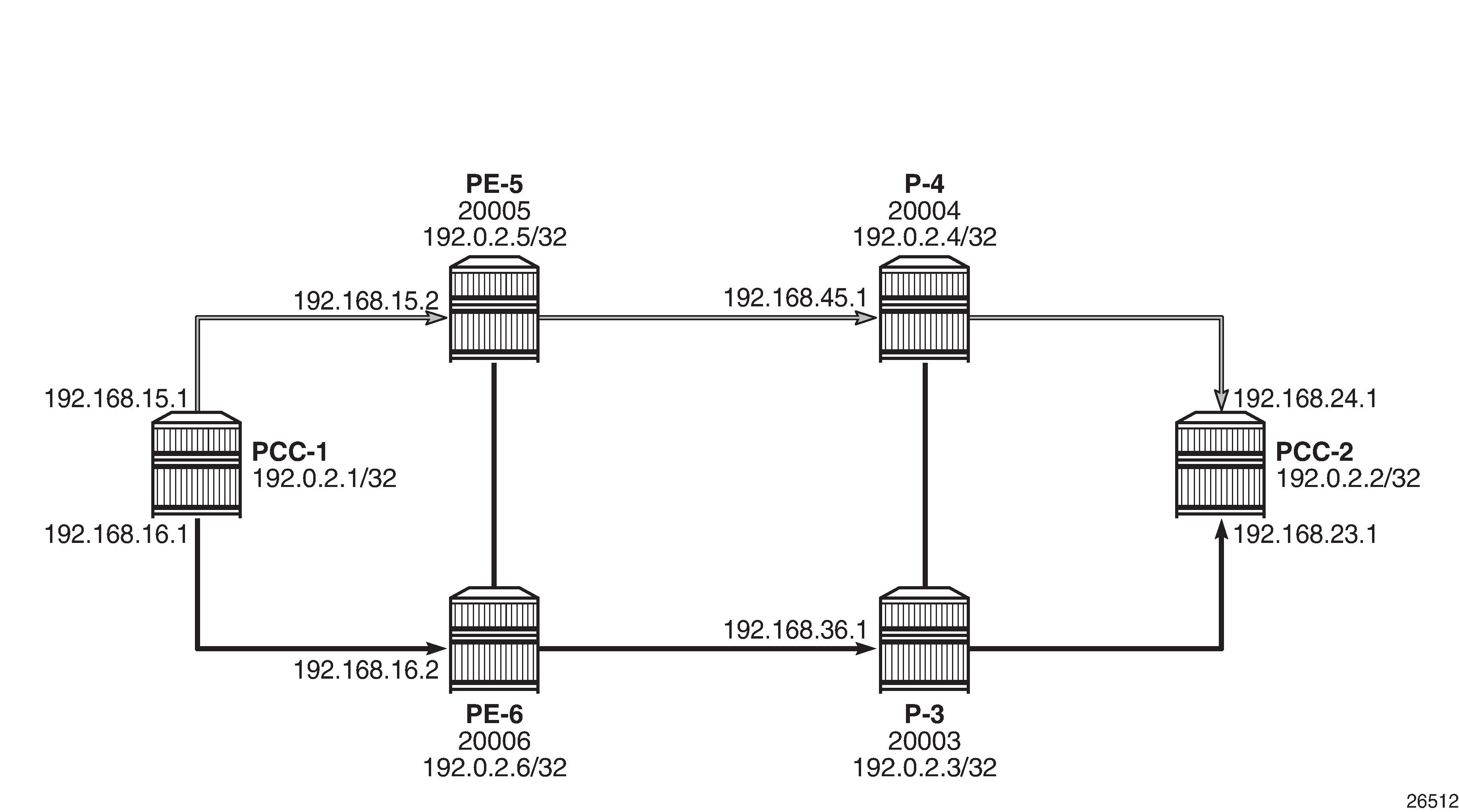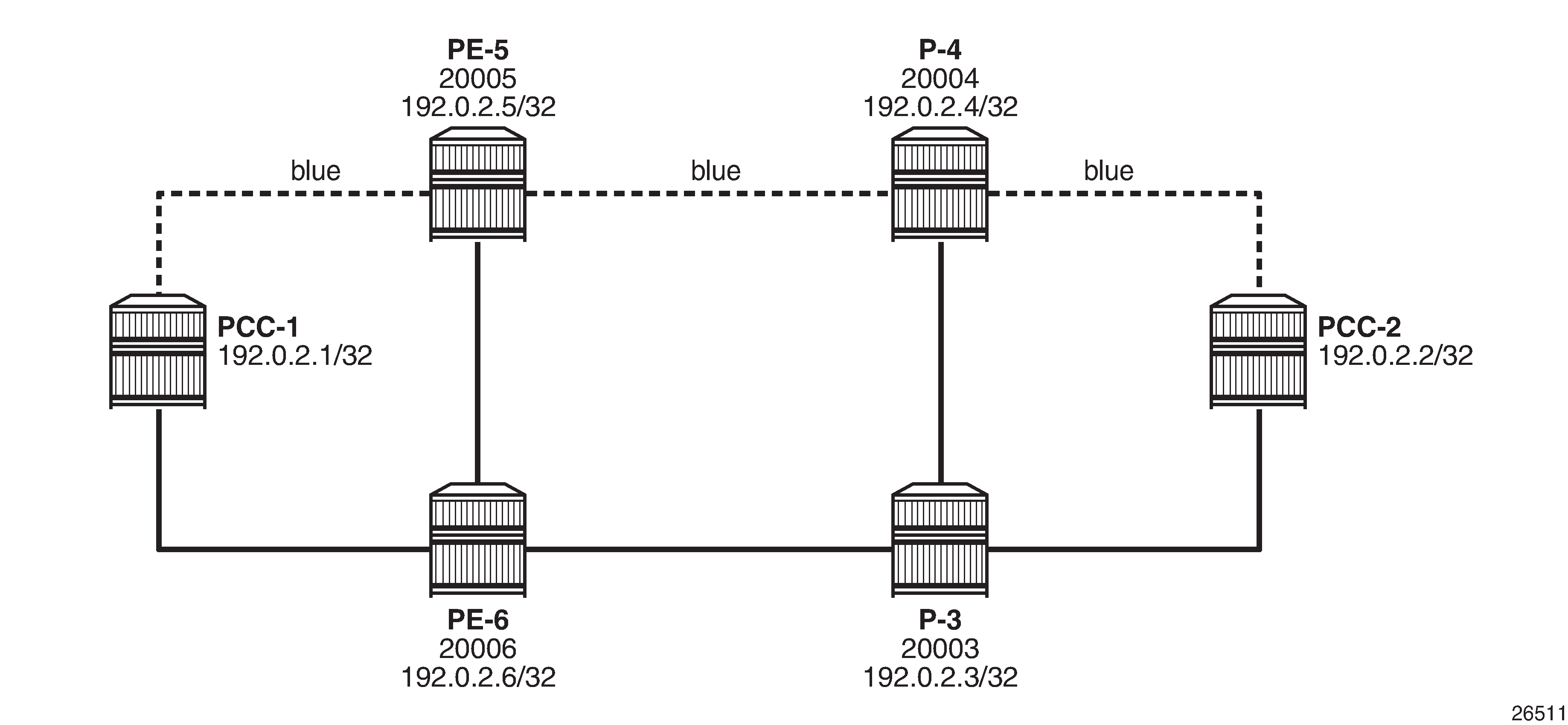 PCEP support for RSVP-TE LSPs extends the use of MPLS labels into traffic engineering applications This example provides the configuration for PCE controlled and computed RSVP-TE LSPs together with the associated commands and outputs that can be used for verifying and troubleshooting.