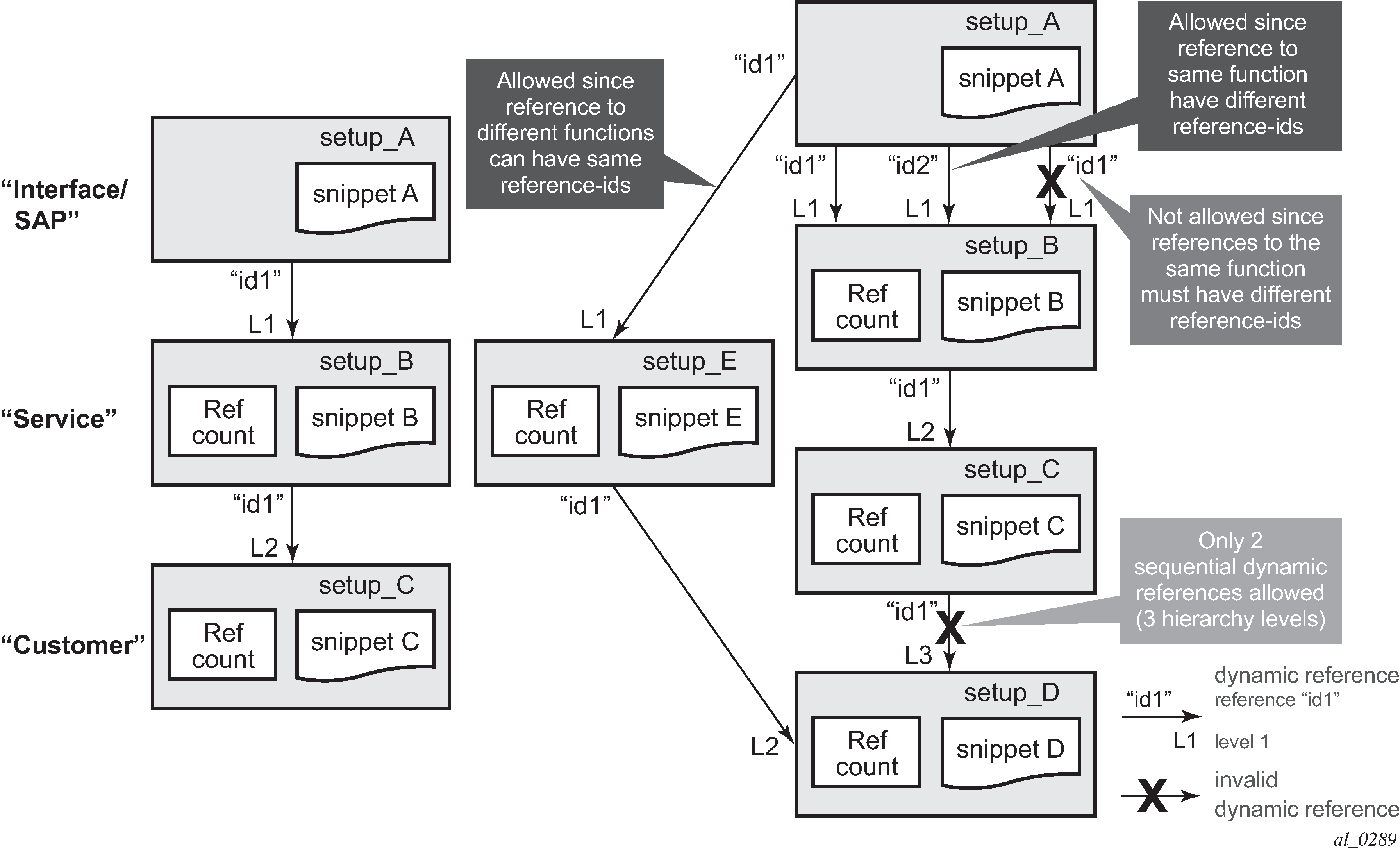 The service-range value reserves a certain amount of service IDs for the use of dynamic data services. The configured range is no longer available for regular provisioned services configured via the CLI/SNMP.