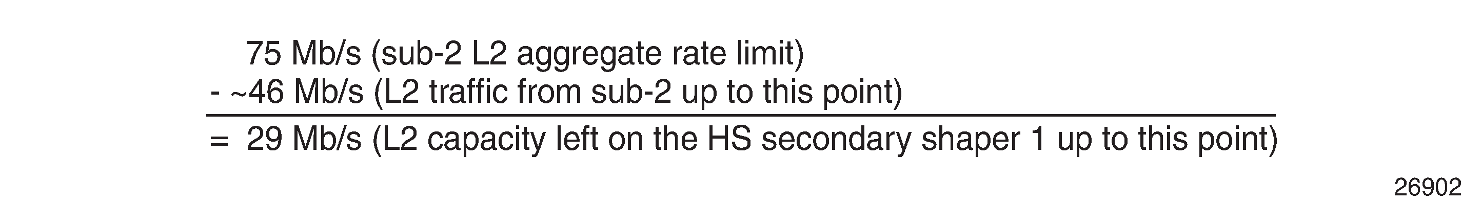 Spare capacity for HS secondary shaper 1 is calculated based on on-the-wire rates while the subscriber aggregate capacity is calculated in L2 rates, because the aggregate rate limit in the HS secondary shaper is configured in on-the-wire rates while the subscriber aggregate rates are configured in L2 rates.
