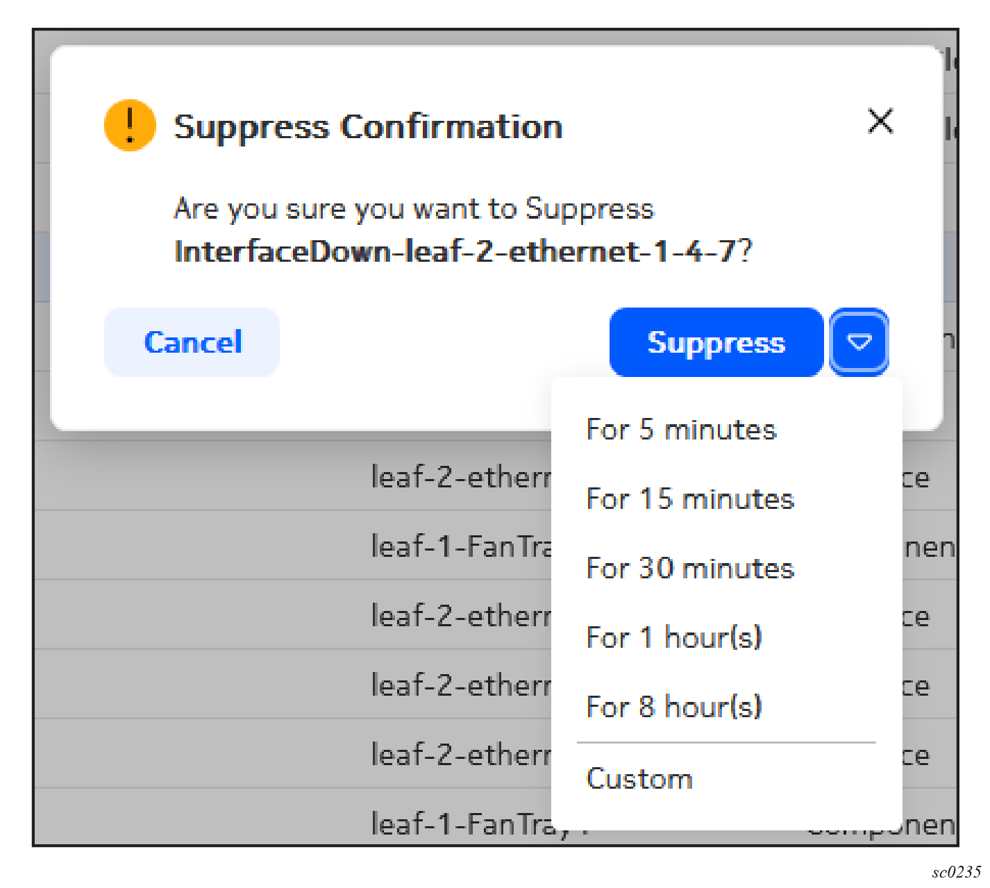 Click Confirm to complete the alarm suppression.