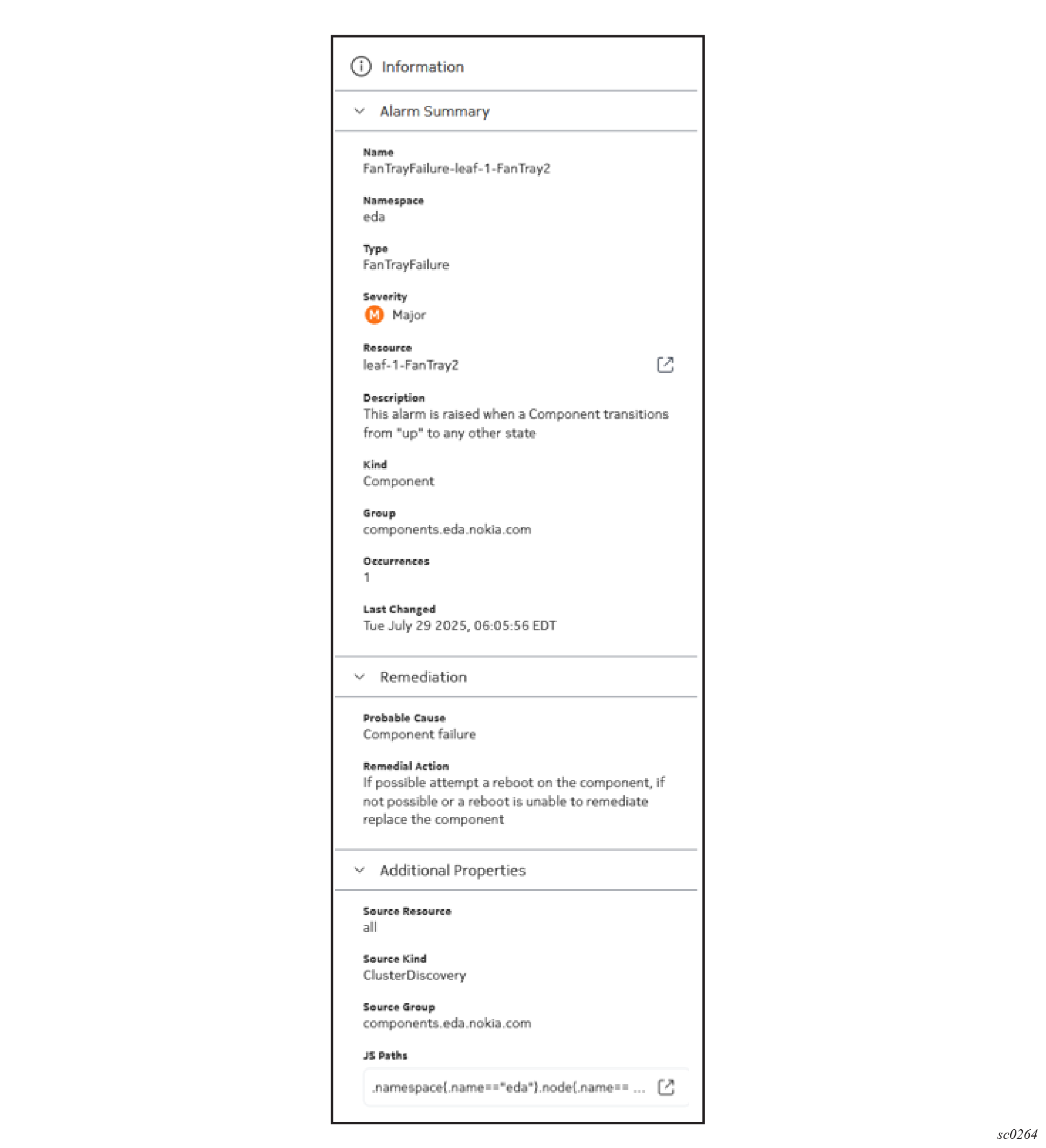 For example, this is set to fabrics.eda.nokia.com if an alarm is raised against a Fabric. |