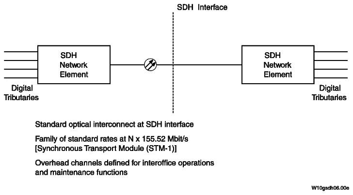 The SDH interface provides the optical mid-span meet between SDH network elements. An SDH network element is the hardware and software that affects the termination or repeating of an SDH standard signal.