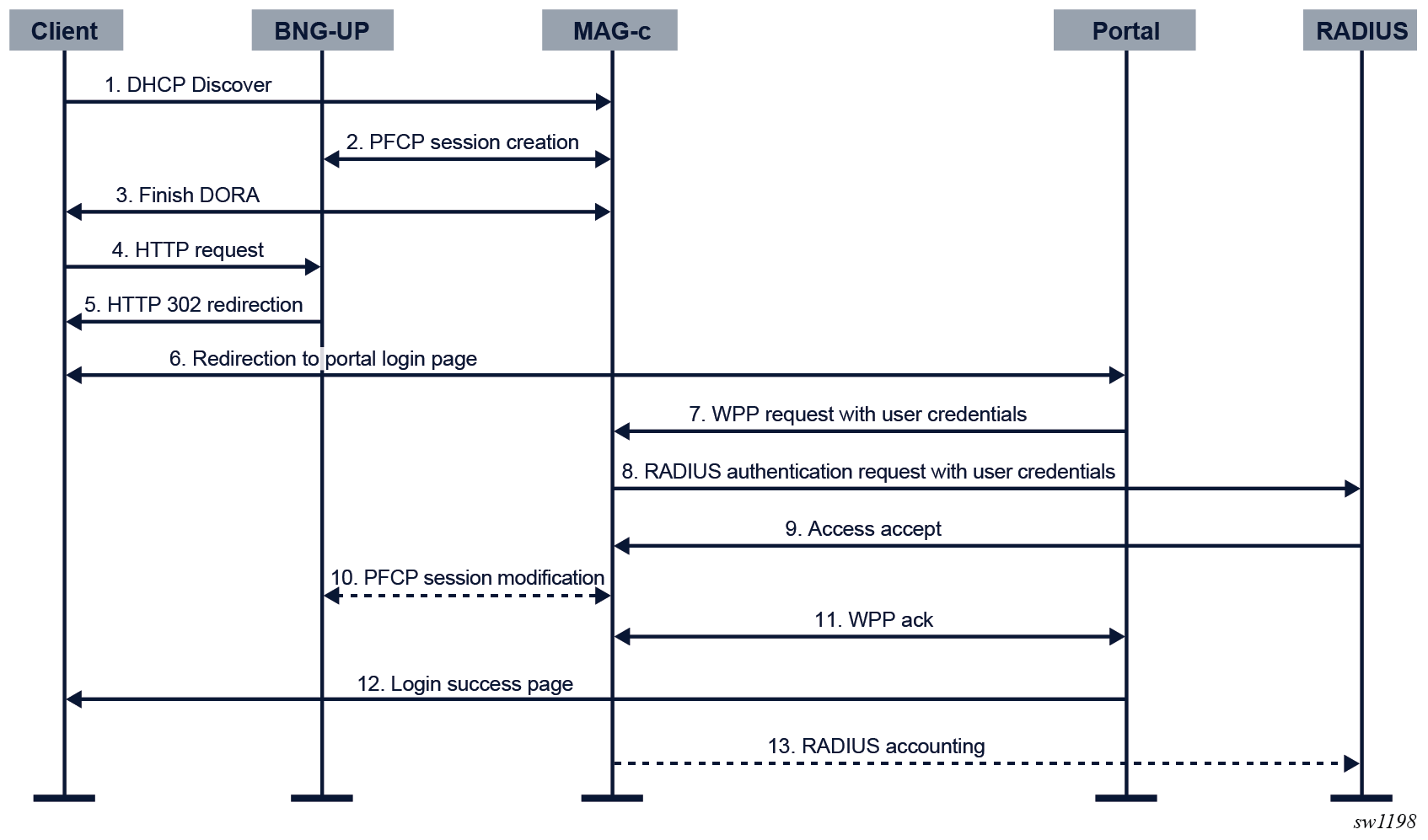 The BNG supports the WPP protocol to authenticate broadband or WLAN users on a web portal.