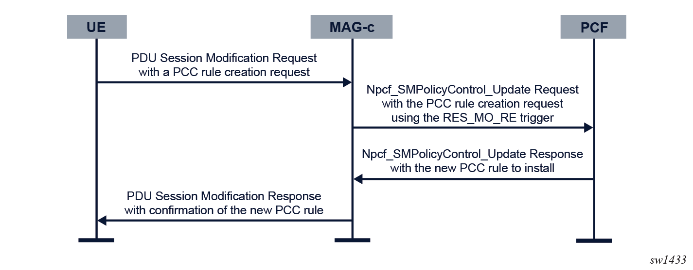 - The MAG-c sends a PDU Session Modification Response message confirming the new PCC rule toward the UE.