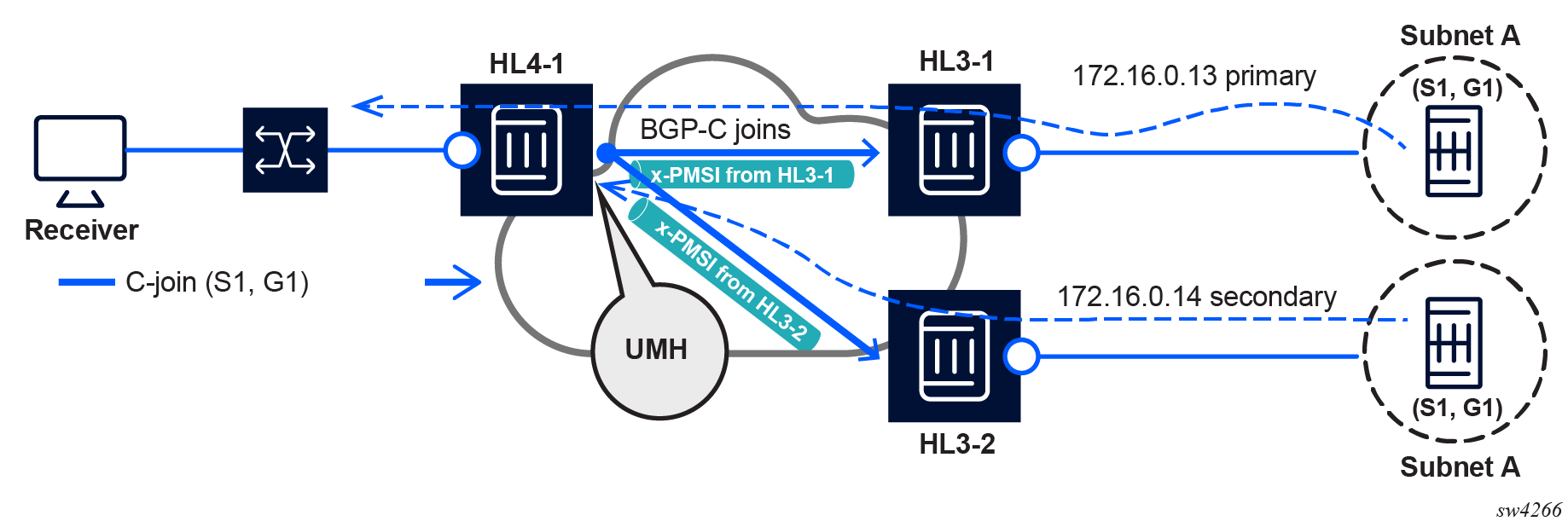 Traffic is load balanced across both the IPv4 and VPN-IPv4 next hops. This helps to use all available bandwidth to reach a dual-homed VPRN.