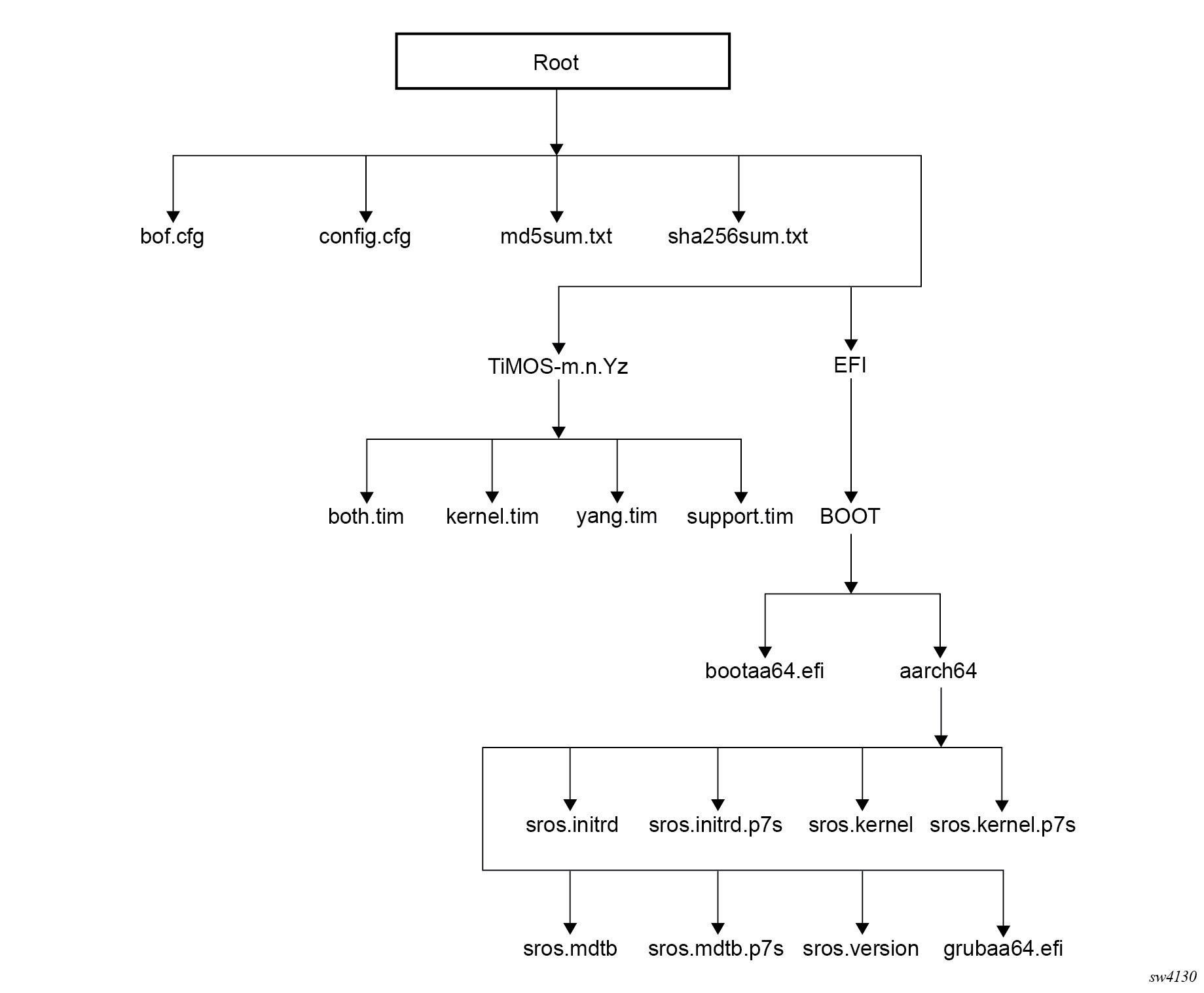 bootaa64.efi executes the other images in /EFI/BOOT/aarch64 before executing the BOF file and loading SR OS TiMOS software images and configuration