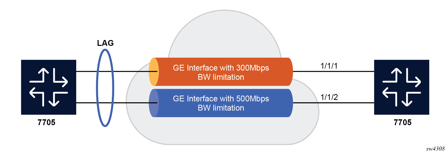 LAGs can be either statically configured or formed dynamically with Link Aggregation Control Protocol (LACP). A LAG on the 7705 SAR Gen 2 can consist of same-speed ports only.