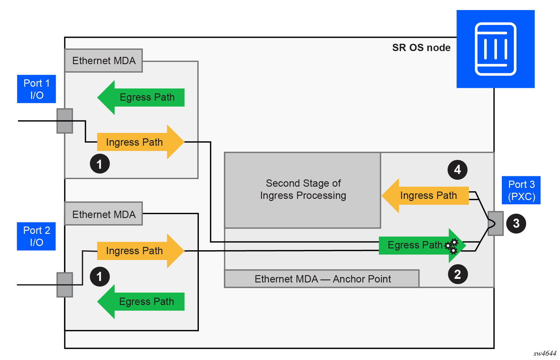 This section describes the PXC feature implementation. PXC is a software concept representing a pair of logical ports interconnecting egress and ingress forwarding paths within the same forwarding complex (FC). In cross-connect functionality, an egress forwarding path is looped back to the ingress forwarding path on the same forwarding complex instead of leading out of the system.