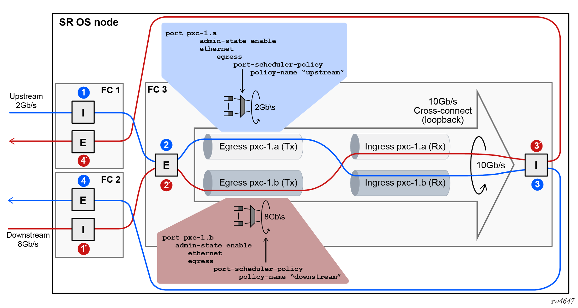 The network user must understand the concept of the PXC sub-ports described in Port-based PXC for correct egress QoS configuration in the traffic manager (Q).