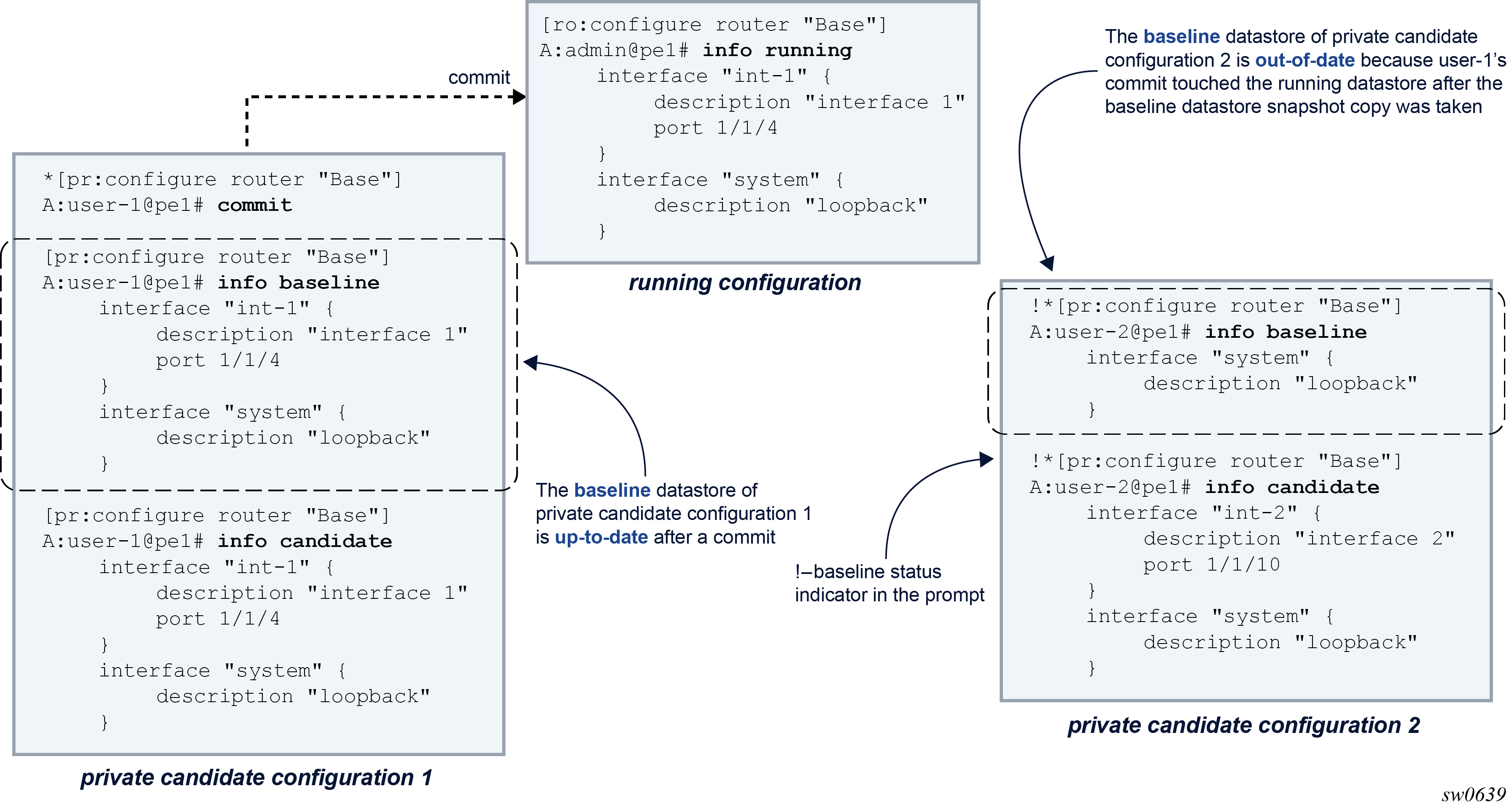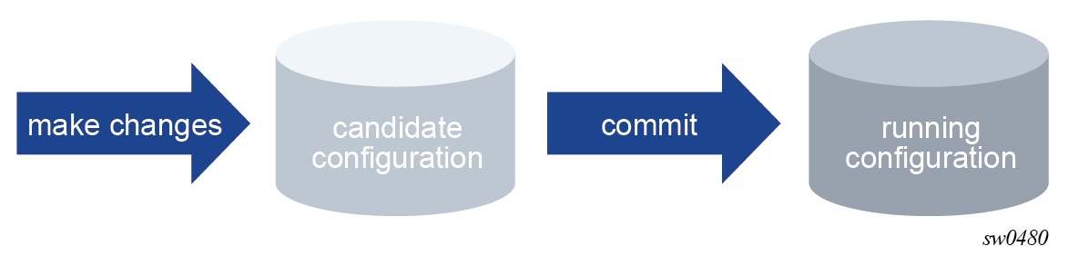 The following figure shows the flow of configuration changes from the candidate configuration to the running configuration.