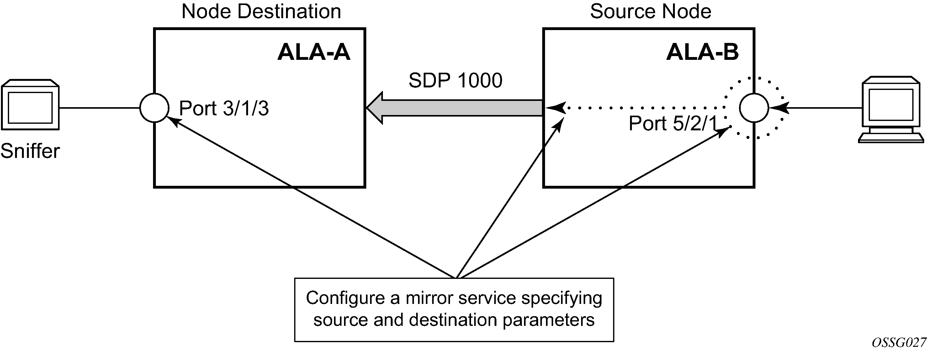 Original packets are forwarded while a copy is sent out the mirrored port to the mirroring (destination) port. Service mirroring allows an operator to see the actual traffic on a customer’s service with a sniffer sitting in a central location. In many cases, this reduces the need for a separate, costly overlay sniffer network.