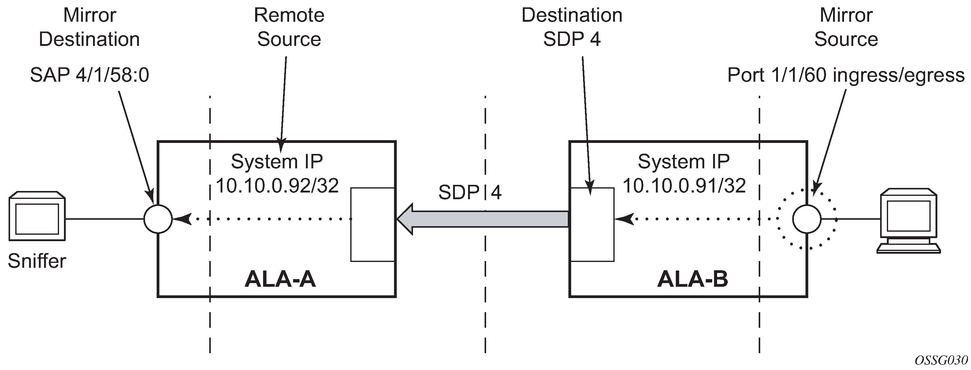 - spoke-sdp - mirroring to a remote location using a SDP. The remote location uses the remote source to terminate the spoke SDP