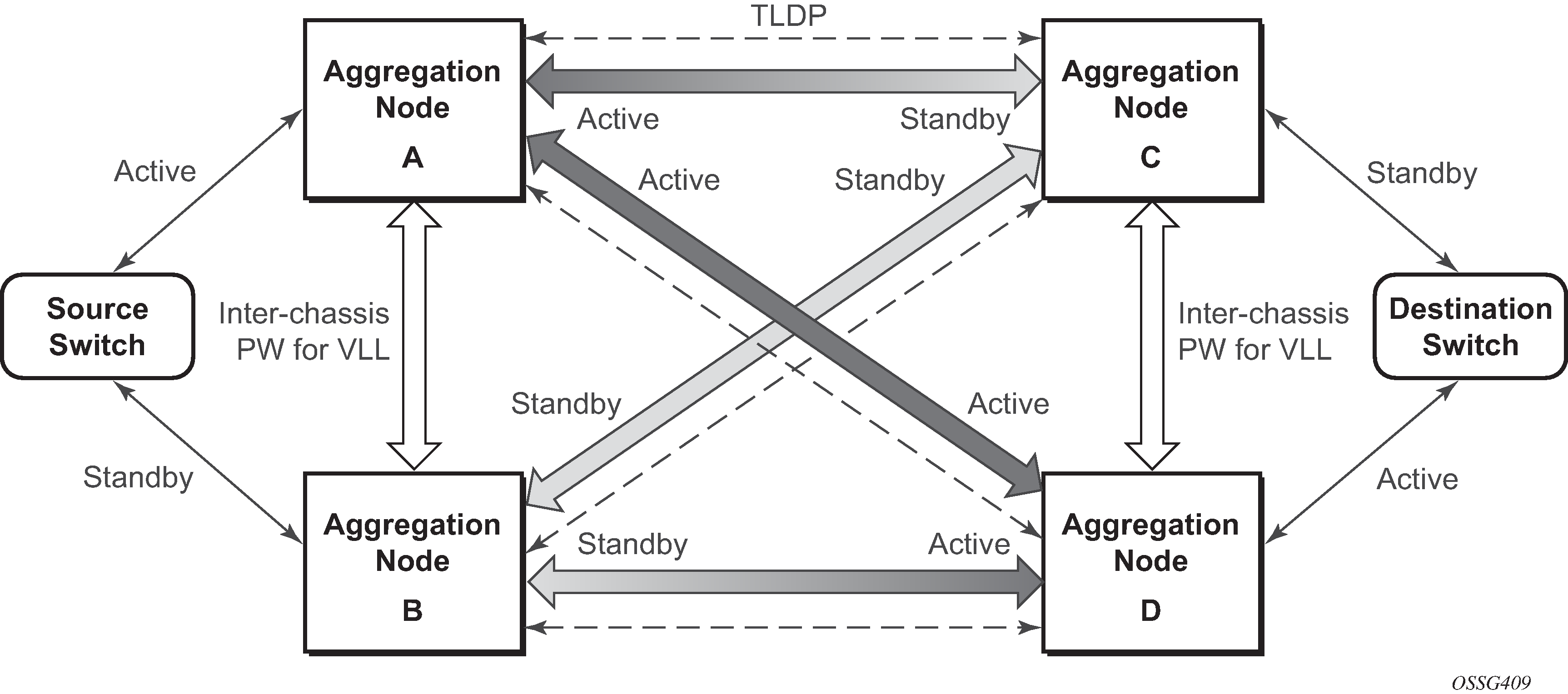 Only one tx-active can be chosen for either SAP endpoint or SDP endpoint. Traffic ingressing into a remote-source ICB has only ingressing traffic while an ICB spoke has only egressing traffic.