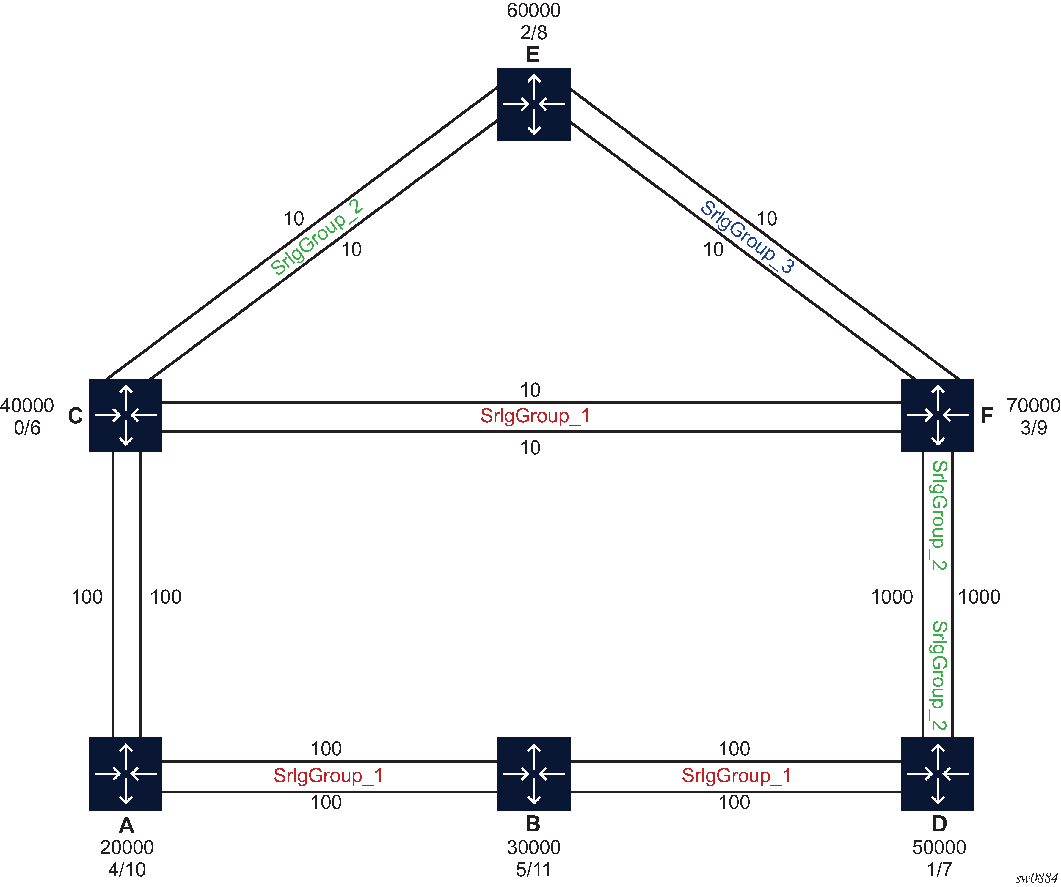 The preceding commands fail if the network interface is not of type system or loopback, or if the interface is defined in an IES or a VPRN context. Assigning the same SID index or label value to the same interface in two different IGP instances is not allowed within the same node.