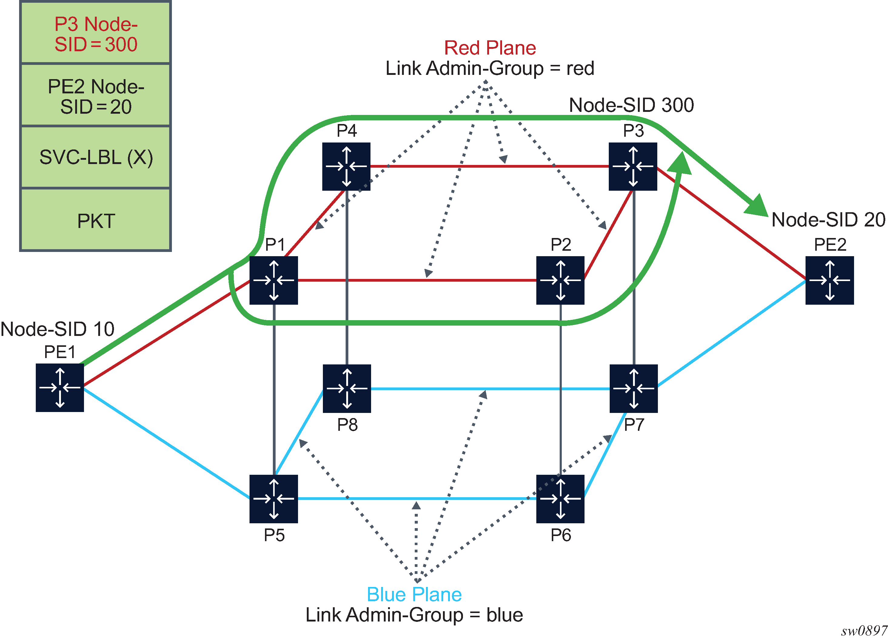 Segment routing provides support for shortest path routing and source routing using abstract segments for IS-IS and OSPF protocols. A segment can represent a local prefix of a node, a specific adjacency of the node (interface or next hop), a service context, or a specific explicit path over the network. For each segment, the IGP advertises a Segment ID (SID).