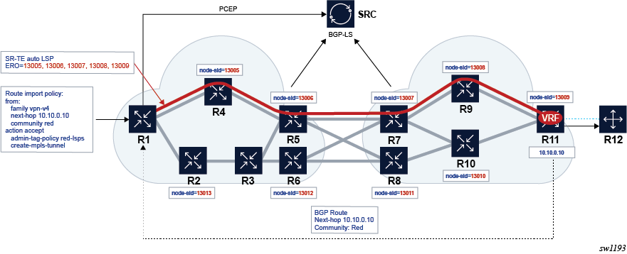 For example, to resolve a label-IPv4 route with a color-extended community (value C) and BGP next-hop address N, the router performs the following steps: