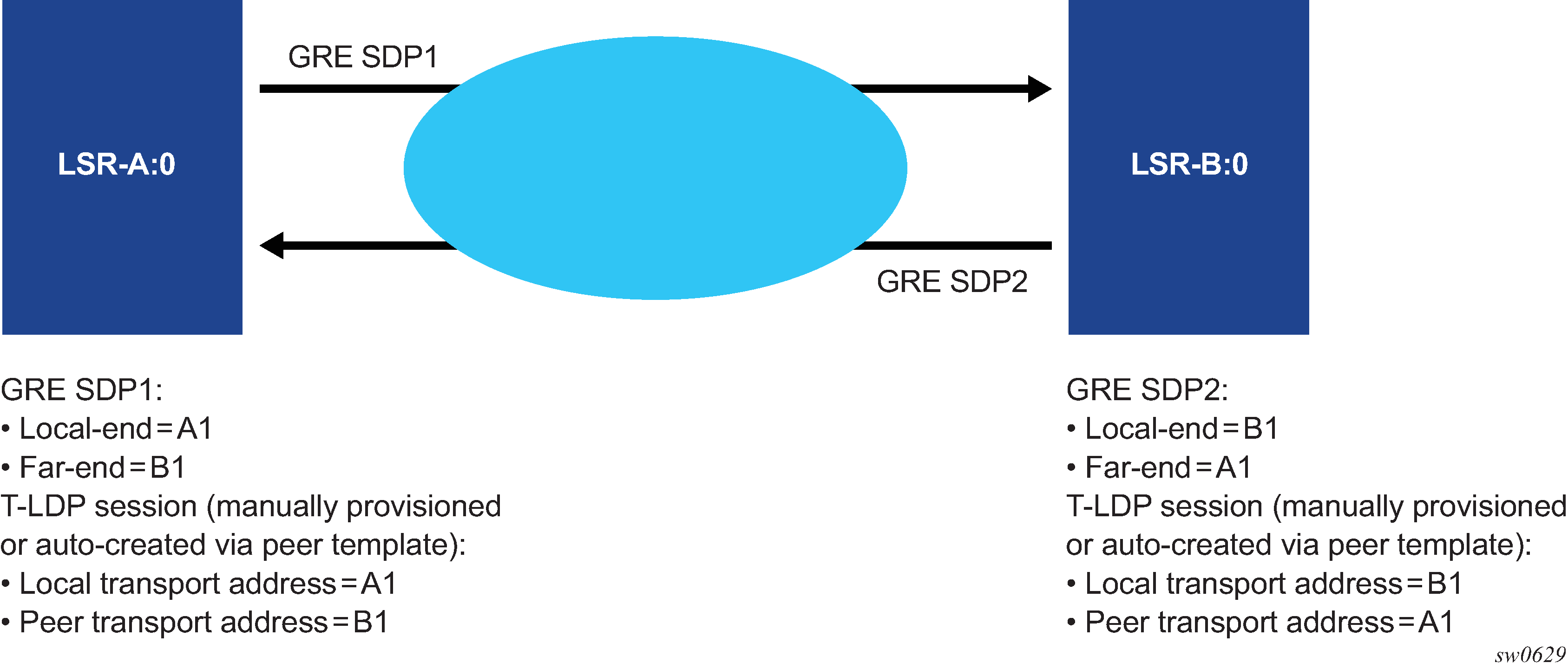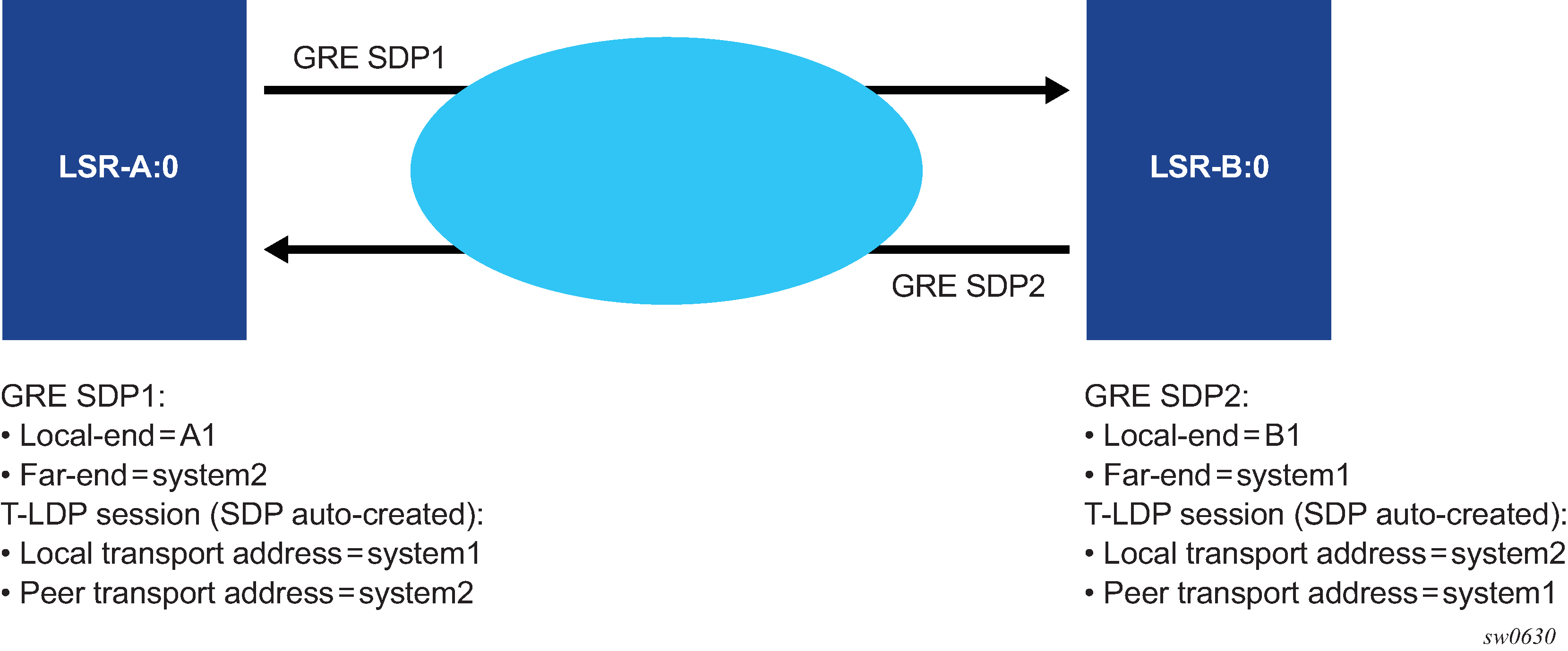 This type of SAP and a SAP defined by explicit null encapsulation (for example, 1/1/1:0) are mutually exclusive. This avoids conflict as to which SAP untagged frames should be associated.