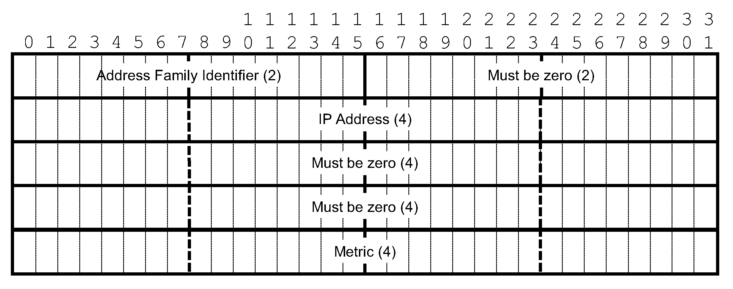 The following figure shows the RIP packet format.