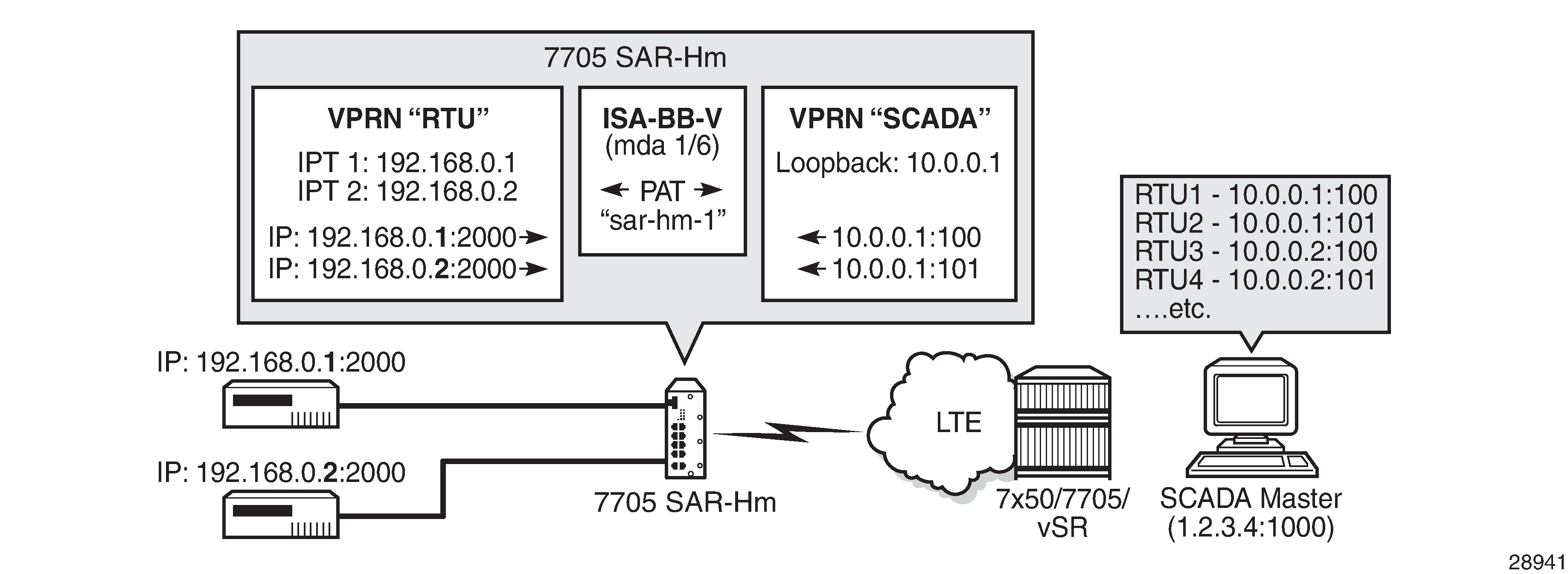 The 7705 SAR-Hm series of routers supports IPSec secured interfaces over cellular interfaces.