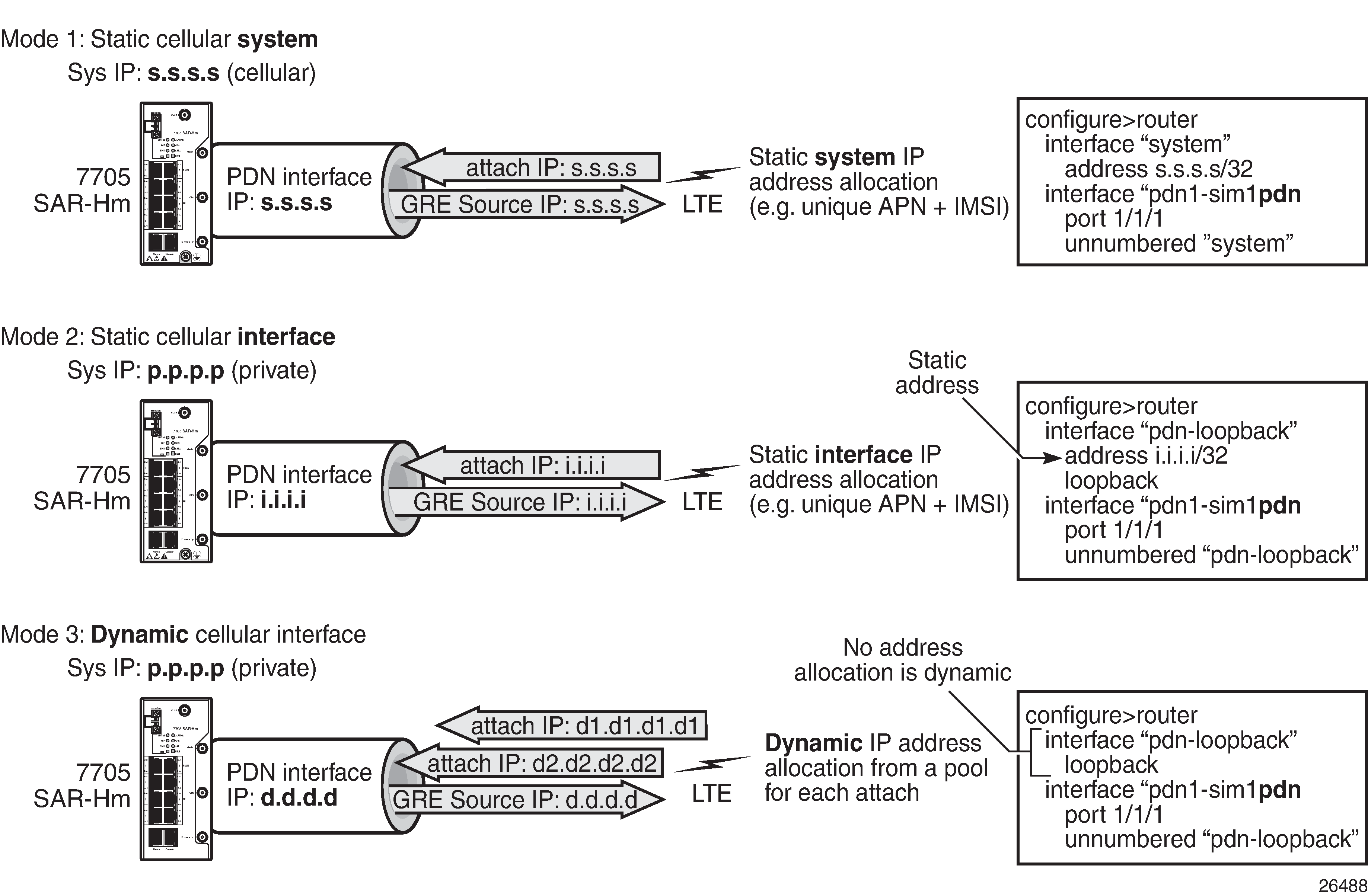 The system IP address used to manage the node is not the same as the cellular PDN interface IP address assigned during the cellular attachment procedure.